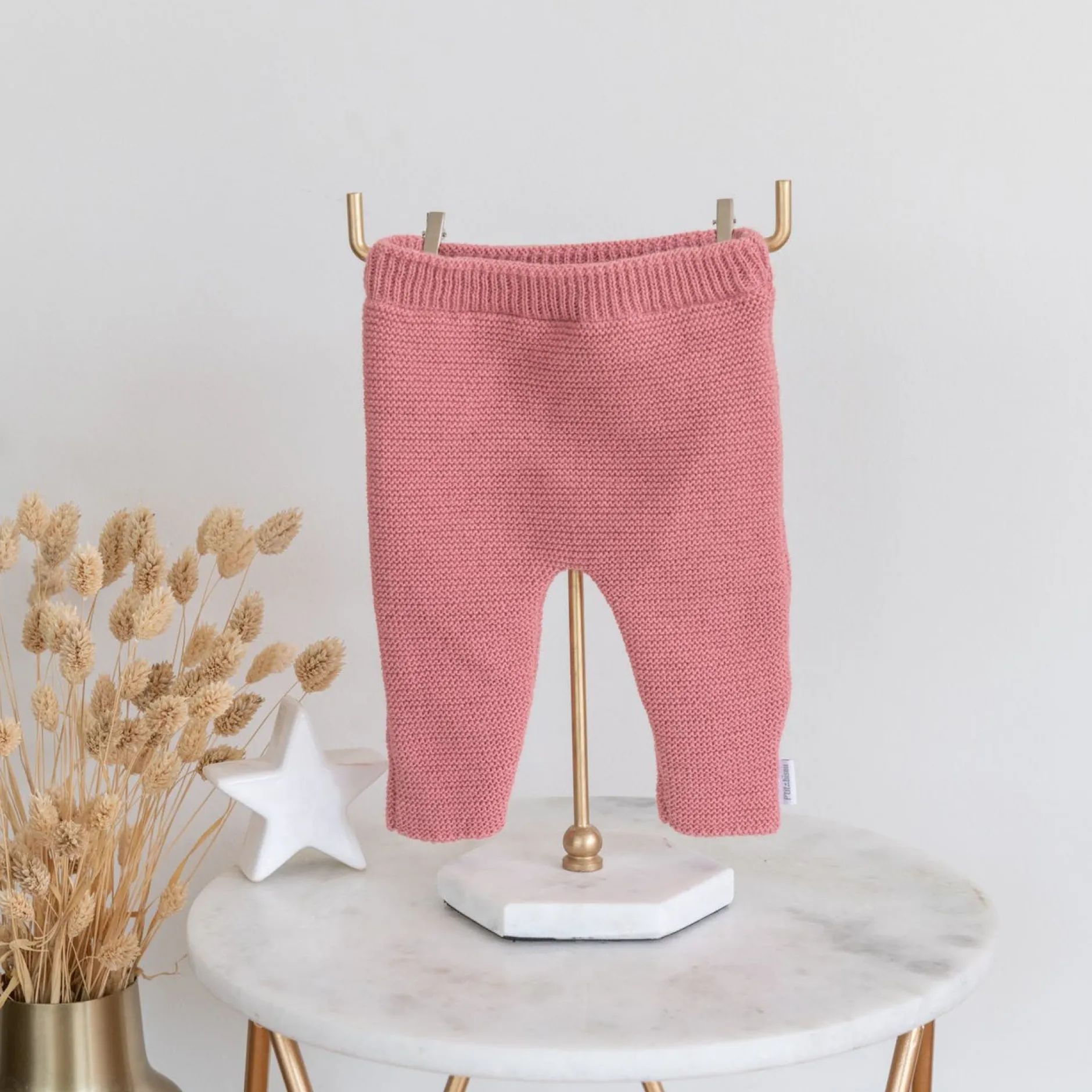 Ce pantalon est intégralement tricoté en acrylique pour garder bébé au chaud, tout en douceur.