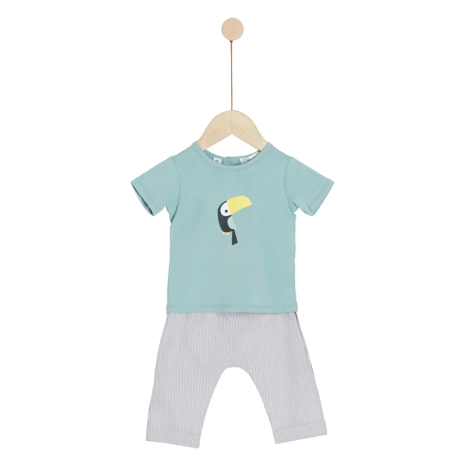 Le tee shirt à encolure ronde et ouvert dans le dos par des pressions est très tendance ! On retrouve l’imprimé affective sur le devant avec la petite mascotte du thème : le toucan exotique.Cet ensemble ravira les petits garçons et surtout les parents qui bénéficient de 2 pièces à la fois complémentaires et séparables pour un prix unique !