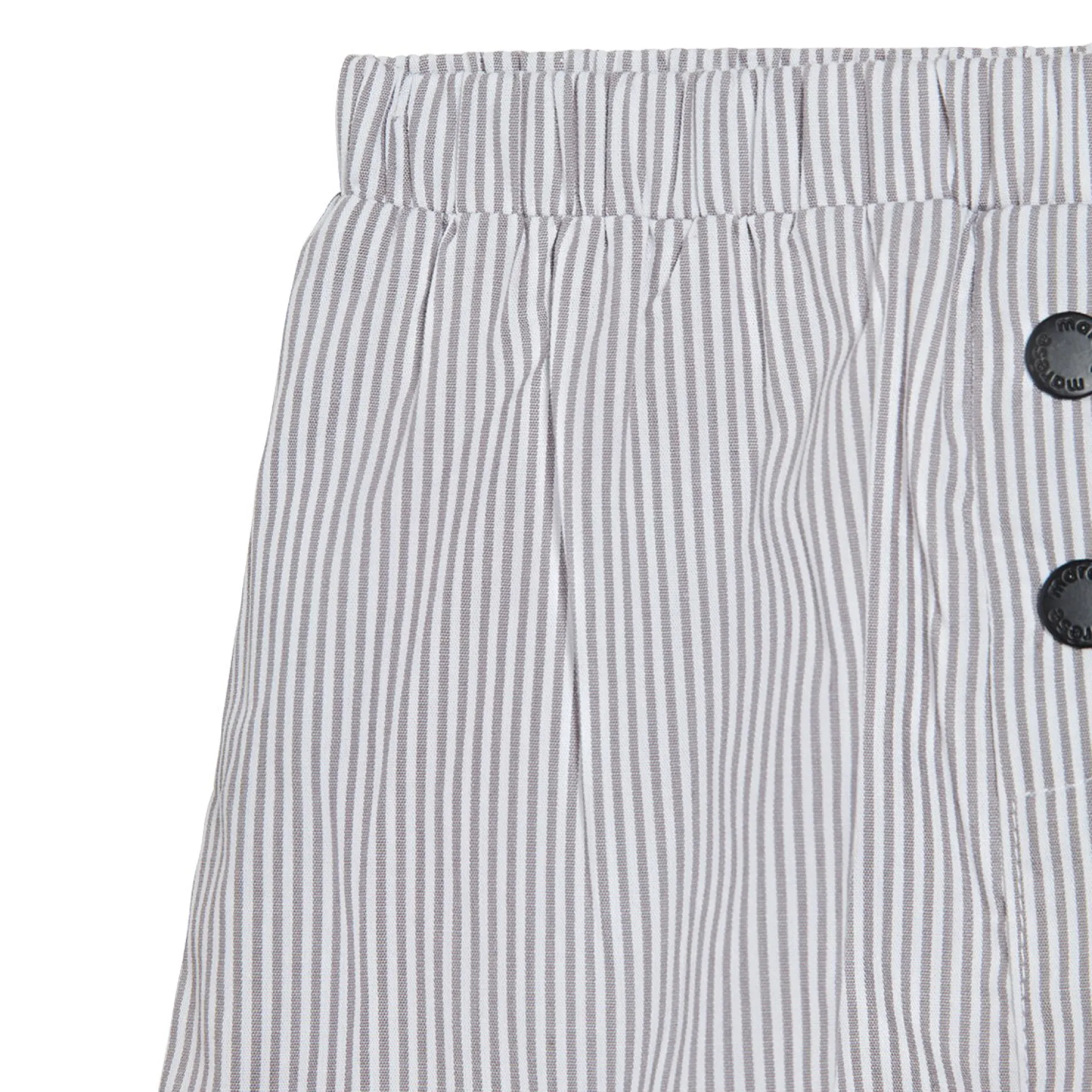 Ensemble 2 pièces Marèse composé d’un pantalon en voile de coton à rayures gris/blanc et d’un tee shirt manches courtes en jersey blanc avec un joli toucan exotique imprimé devant. Le pantalon est très fonctionnel et pratique par sa matière confort et sa forme mode « carotte » avec sa fourche descendue. Entièrement élastiqué à la taille, il s’adaptera à toutes les morphologies.