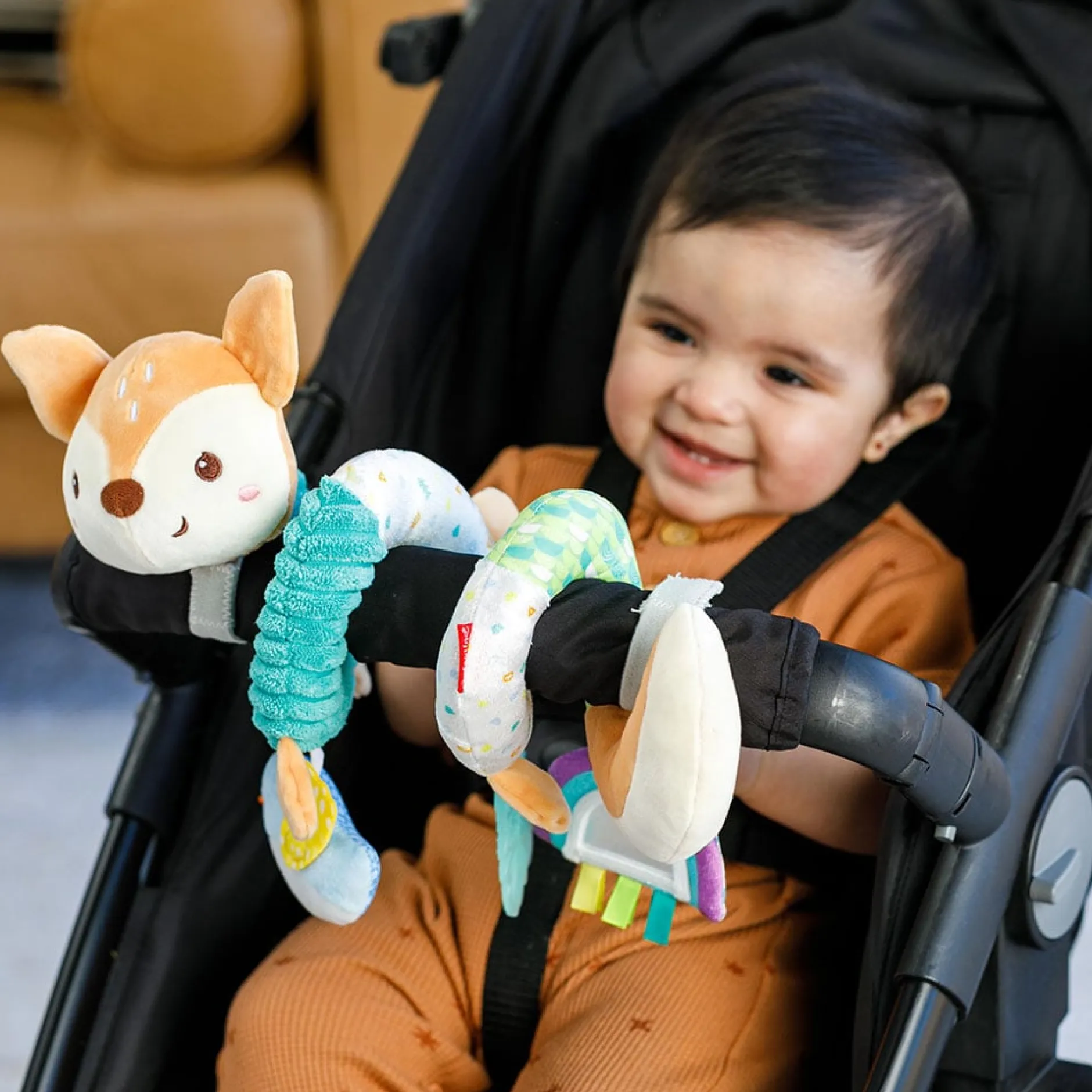 La spirale d’activités renard GoGaGa d’Infantino éveillera la curiosité et la motricité de votre enfant. Dotée d’un miroir, d’une peluche, de rubans satinés et d’un anneau de dentition à mordiller. Avec ses couleurs vives, ses nombreuses textures et activités, la spirale est idéale pour amuser et évéiller bébé. Elle s’enroule facilement autour de la poignée d’une poussette ou d’un siège auto.