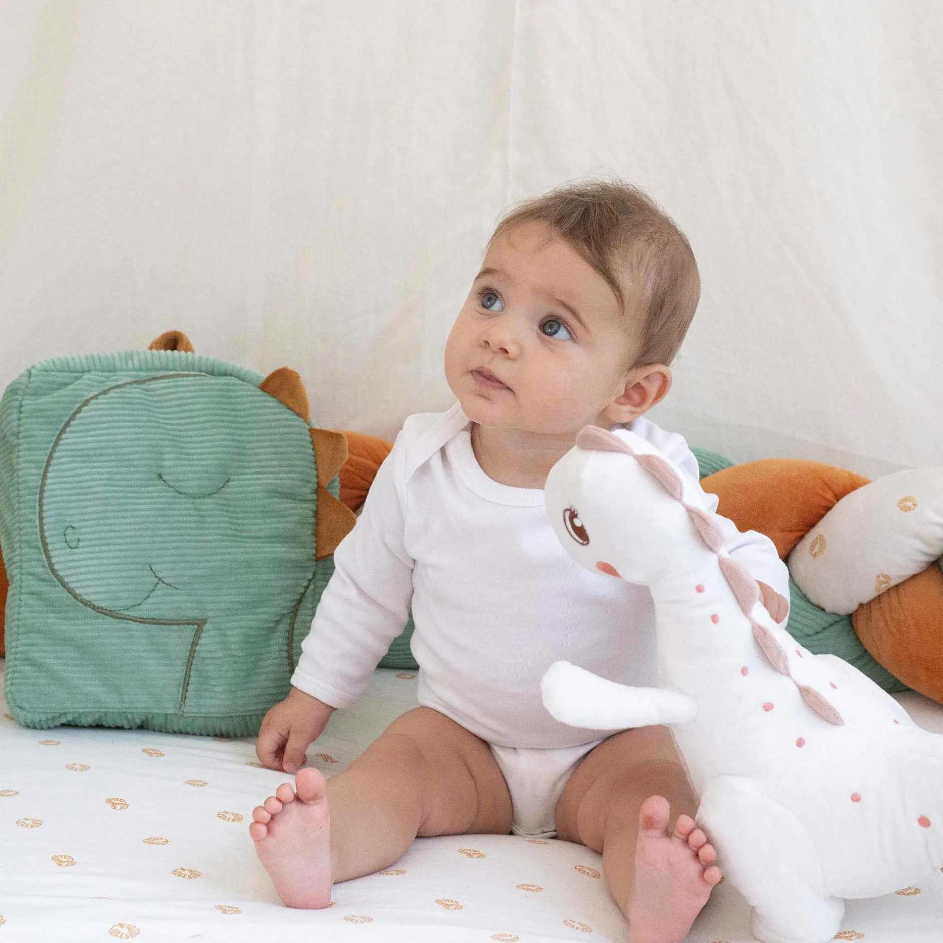Offrez de la douceur à bébé avec cette peluche musicale. Cette peluche musicale dinosaure sera parfaite pour bébé. D’un ton écru, ses touches de vieux rose sur le ventre en forme de cœur sont craquantes.
