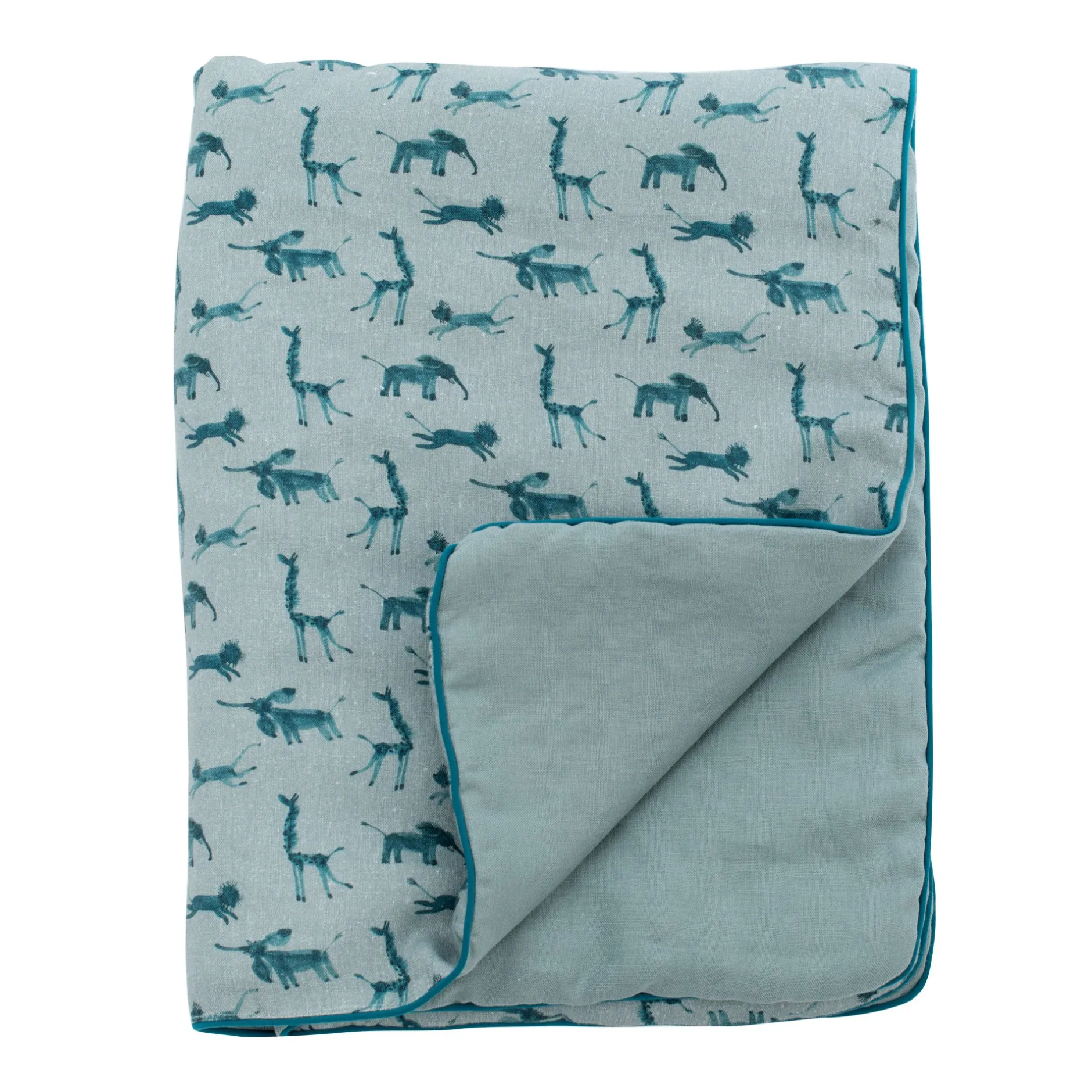 Plaid motif animaux de la collection Sous mon Baobab de Moulin Roty. Cette couverture moelleuse est idéale pour couvrir bébé de douceur, le tenir au chaud, décorer sa chambre et suivre bébé à l’aventure.