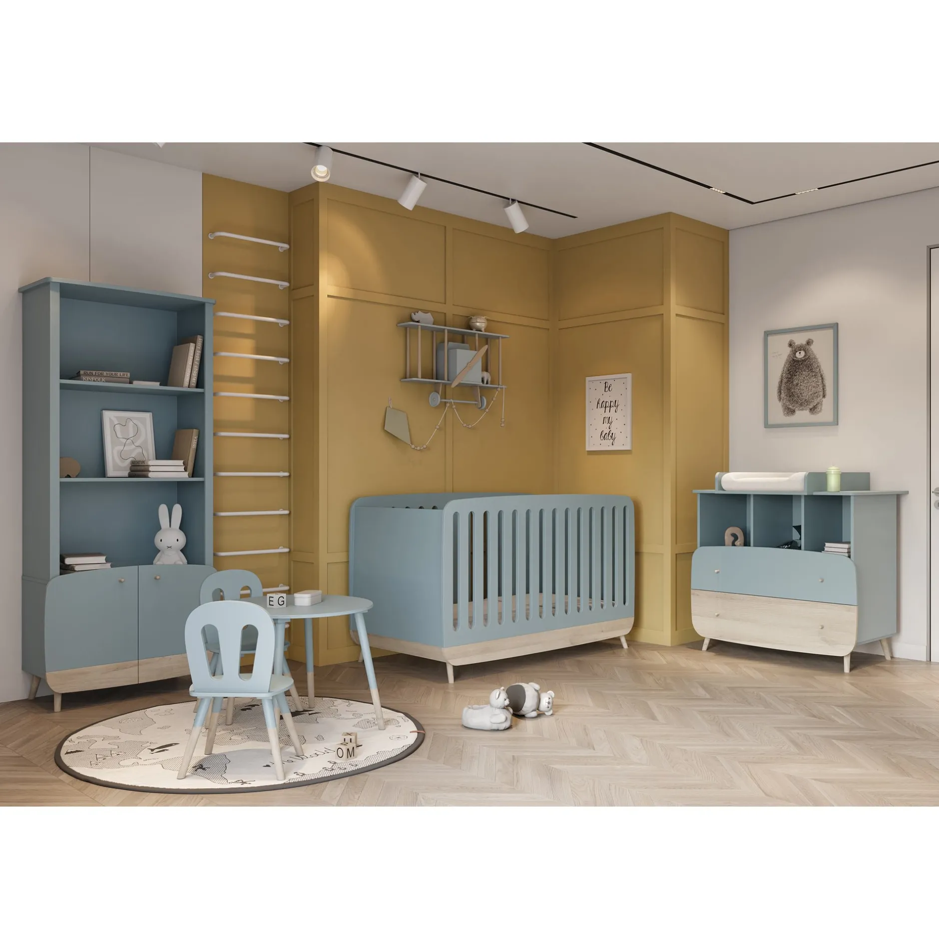 Découvrez la chambre Firmiana, une collection colorée et pleine de rondeur pour plus de douceur. La couleur bleue et le bois naturel apporteront une ambiance apaisante, idéal pour la chambre de votre Bébé.