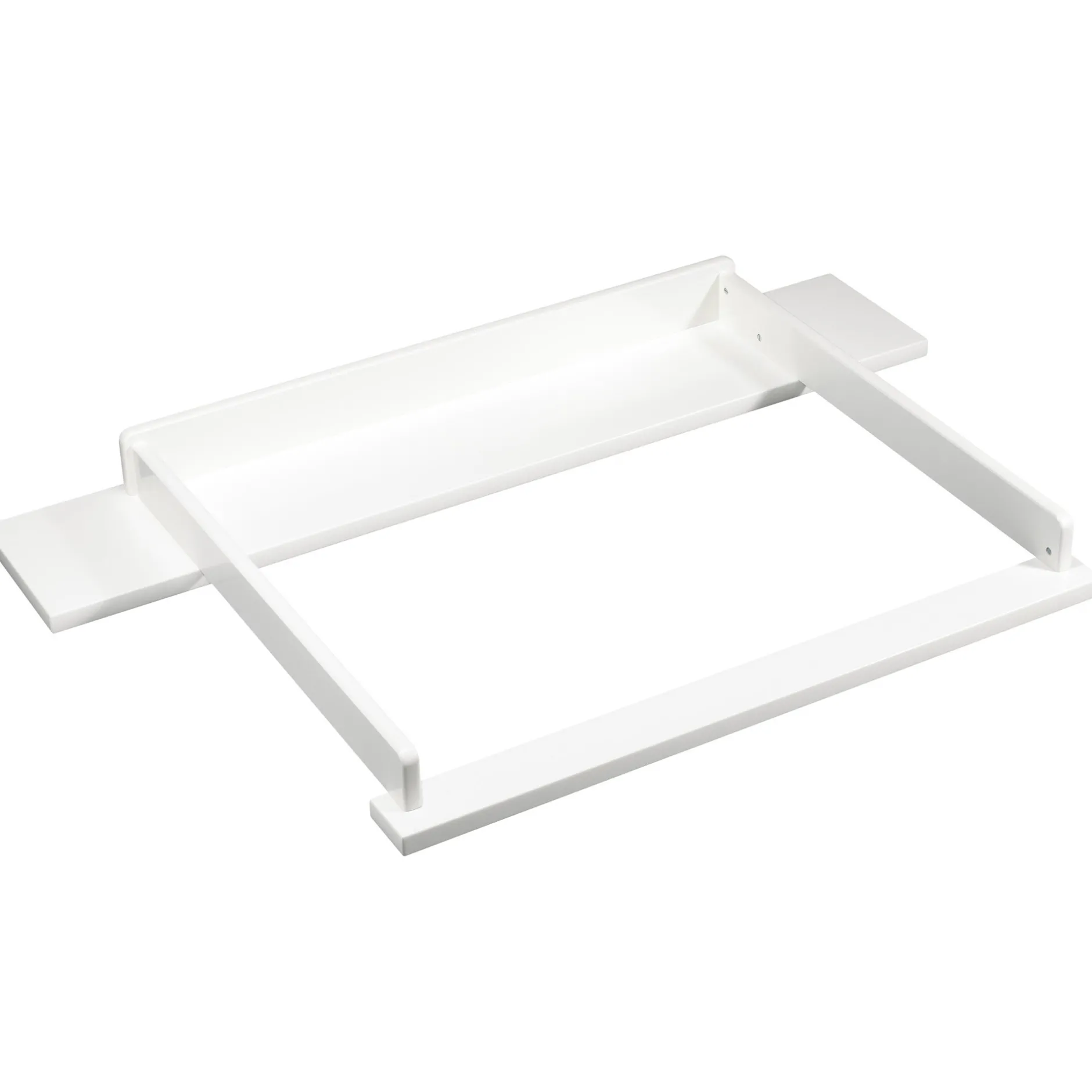 - Traverse avant, plateau arrière, joues et fronton en panneaux de fibres (MDF) laqués blanc.