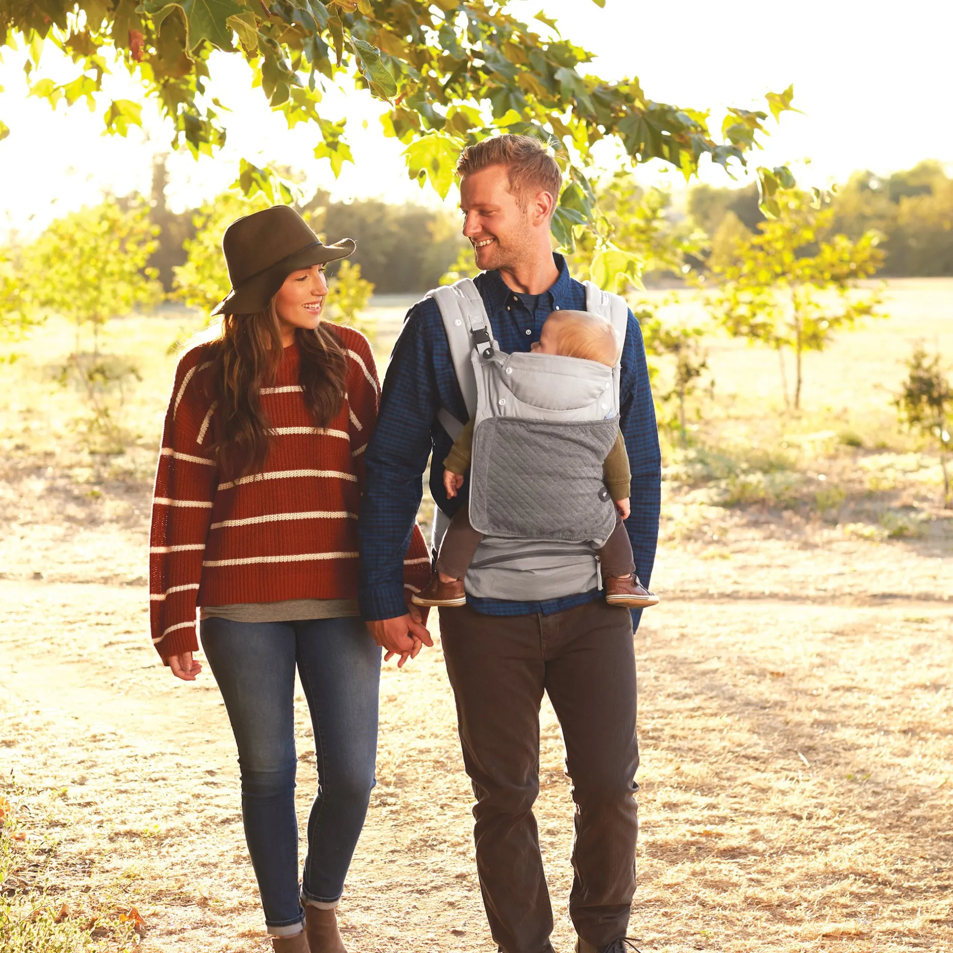 - Jours ensoleillés : dérouler la capuche douce en mousseline intégrée pour protéger bébé du soleil.