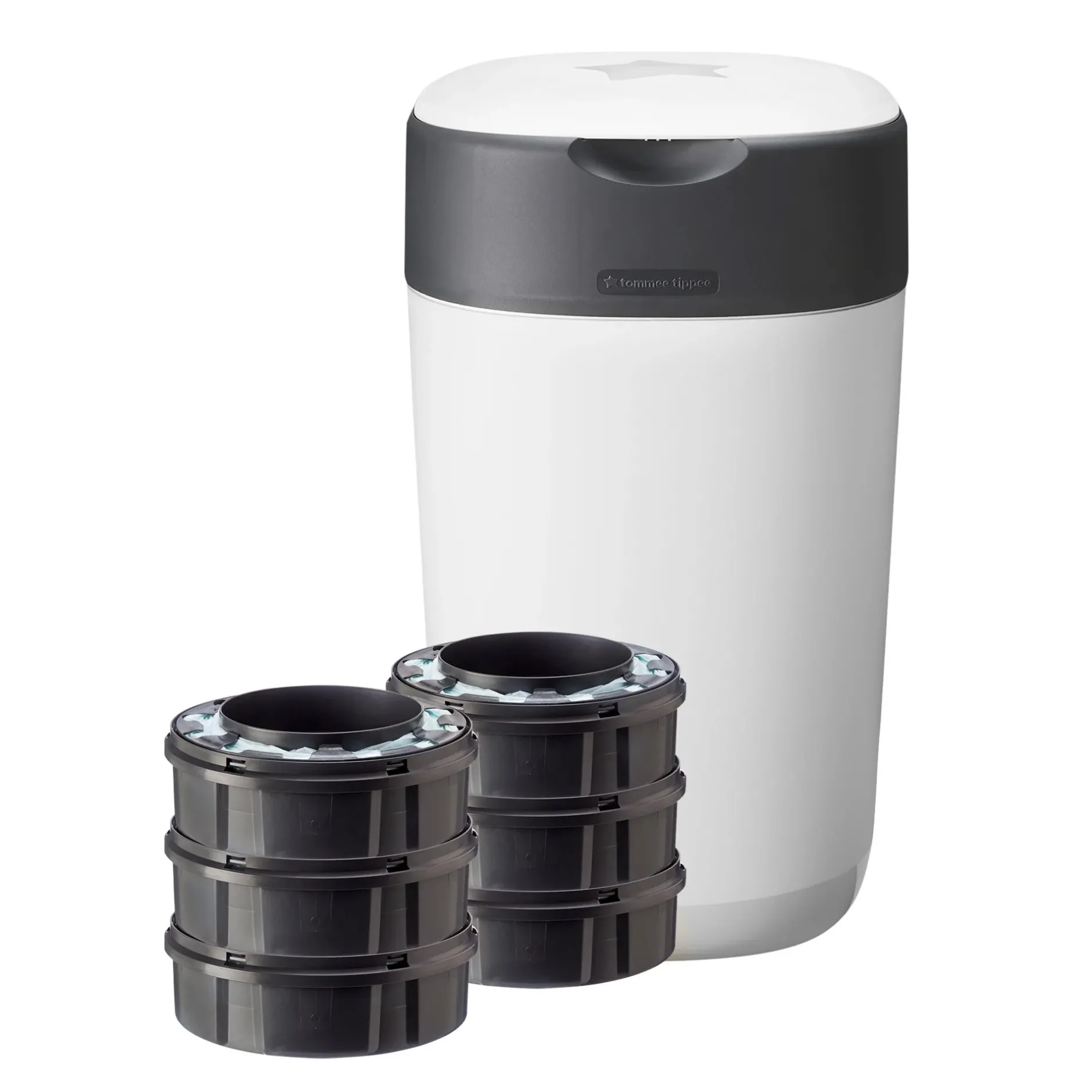 - Le moyen le plus rapide de recharger nos poubelles à couches† : Il faut moins d’une minute pour installer une cassette de recharge Tommee Tippee dans la poubelle à couches de votre bébé, ce qui signifie moins de temps passé à gérer les saletés et plus de temps pour vous et votre bébé