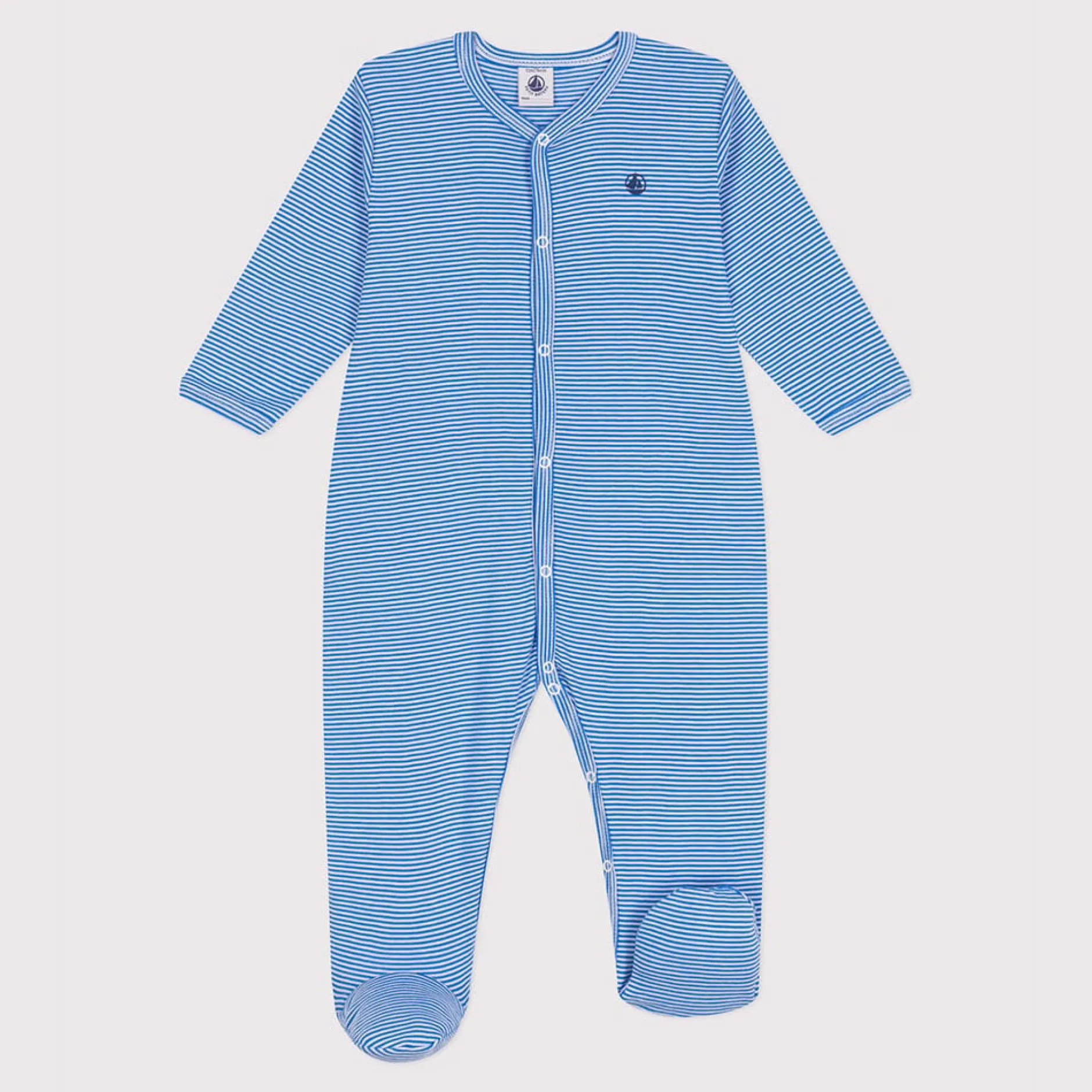Pyjamas|Pyjamas*Petit Bateau Pyjama bébé en coton à rayures de Delphinium / Marshmallow