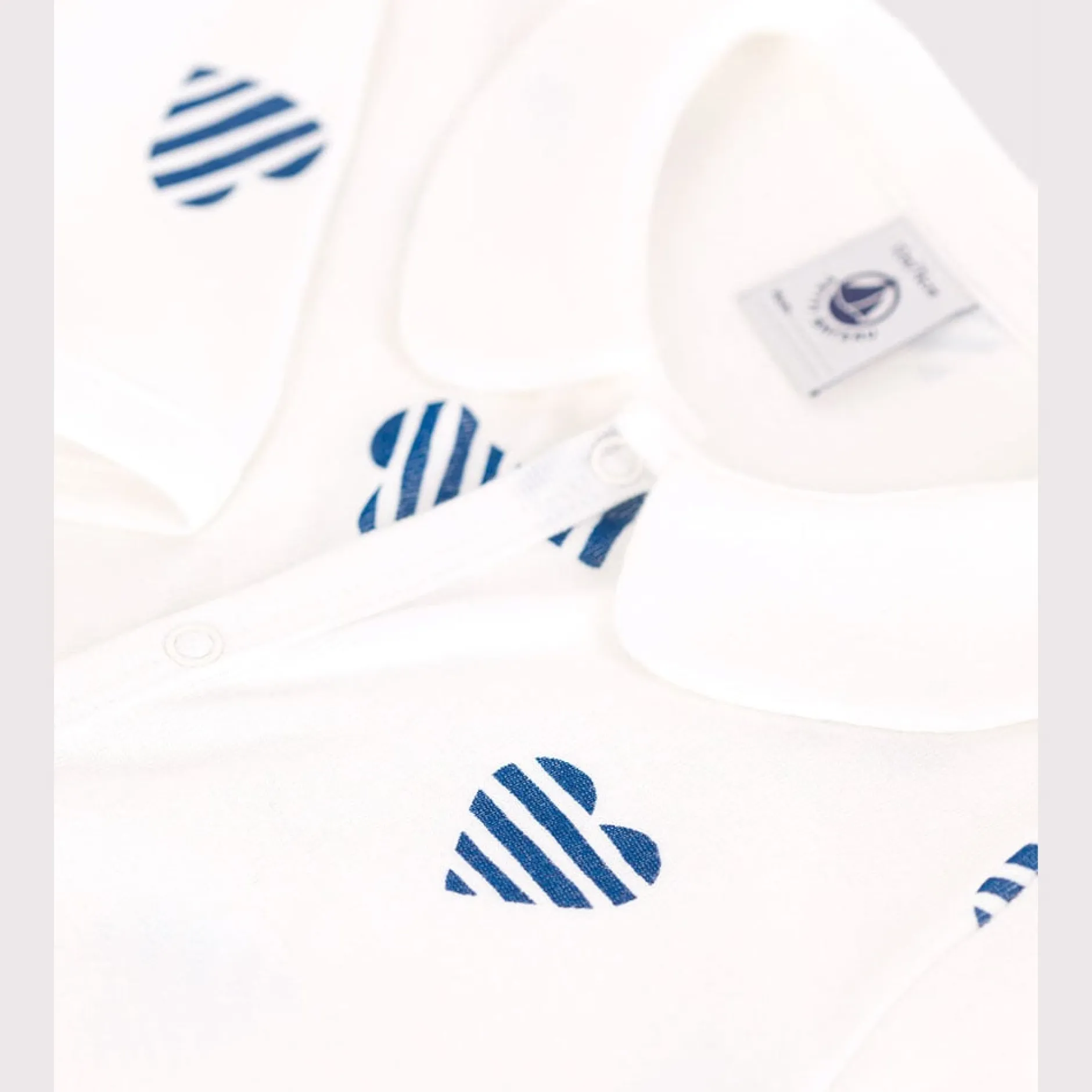 Pyjamas|Pyjamas*Petit Bateau Pyjama bébé en coton sans pieds avec col cœur rayé de Blanc Marshmallow