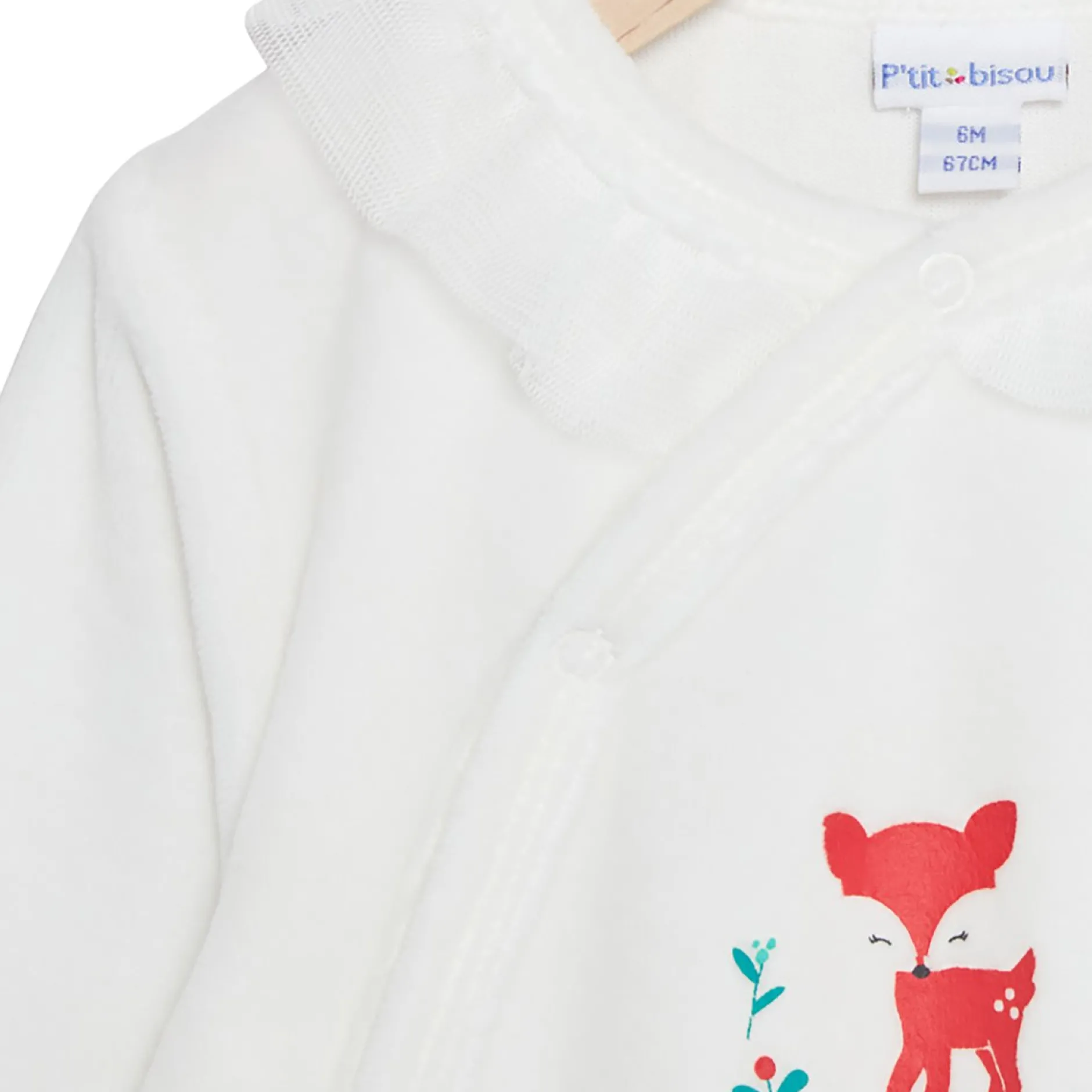 Ce pyjama est conçu pour les petites filles coquettes avec son col volanté en tulle souple écru. So chic ! Nous retrouvons notre mascotte de cet hiver qui est la petite biche ornée d’une couronne de houx. Une pièce tellement craquante et affective ! L’ouverture est pont dos par des pressions en ton sur ton pour plus de fonctionnalité.