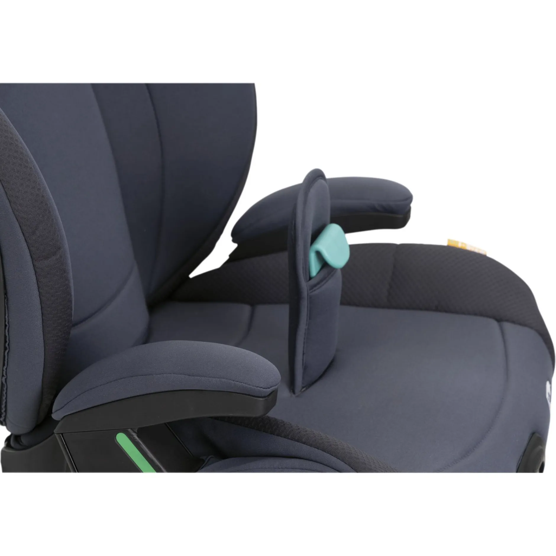 De plus, le Quizy est équipé de guides ceinture verts, ainsi, la ceinture abdominale est maintenue dans une position optimale, au-dessus des os pelviens de l’enfant, réduisant ainsi la pression sur l’abdomen en cas de choc frontal.