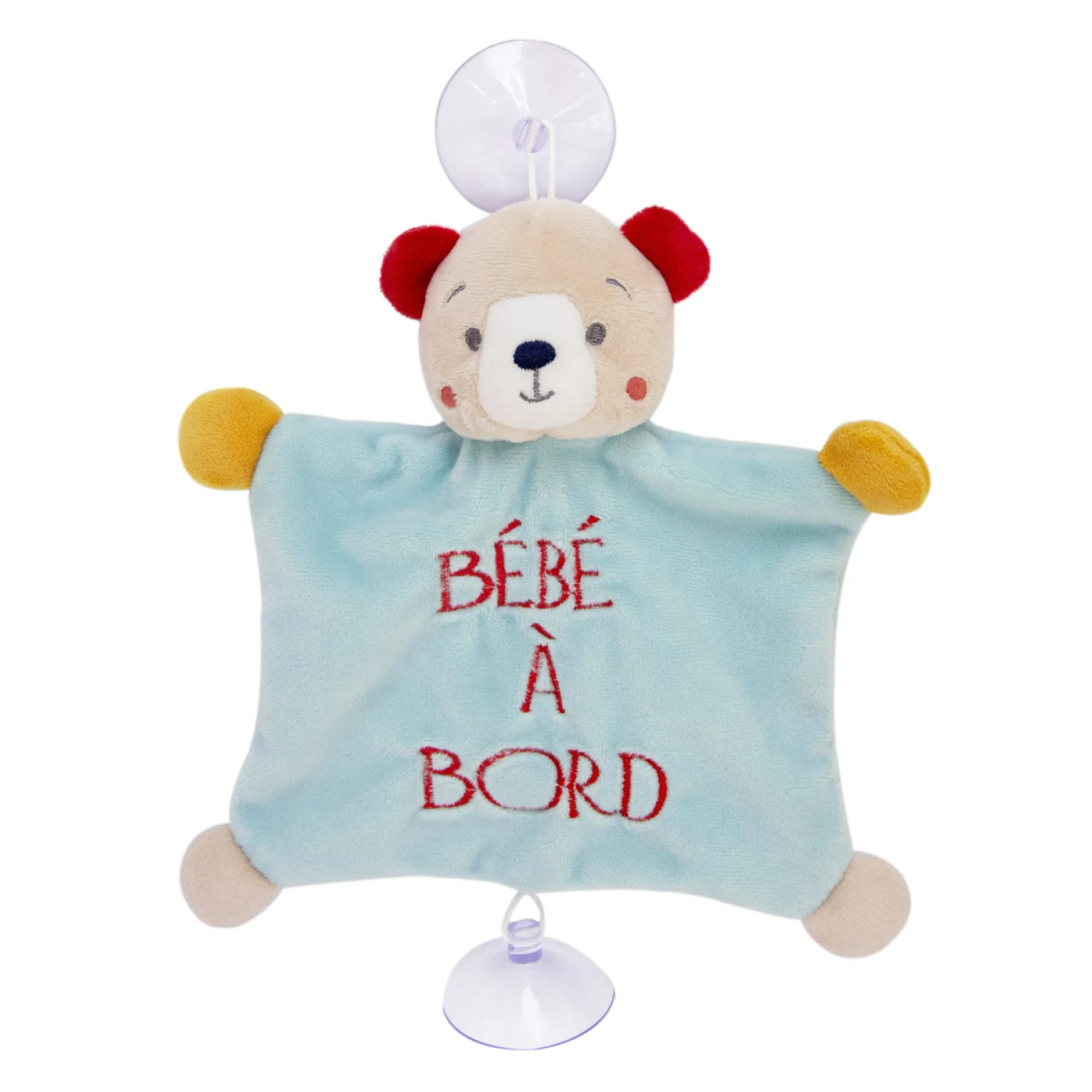 Bébé à bord Lulu & Maël, à l’effigie du petit ours de la collection. Se fixe à l’aide de ventouse.