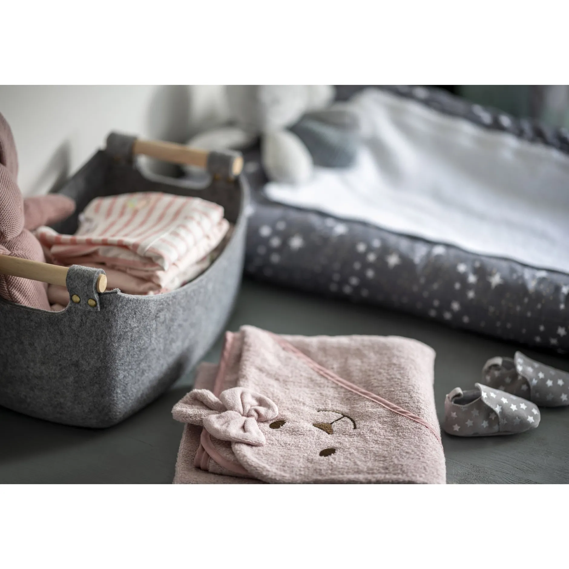 Pour passer un moment des plus mignons lors de la toilette, le coffret avec la cape de bain ours assorti de son gant de toilette est l’allié idéal. Avec son design tête d’ours, Bébé se transformera en petit ourson tout propre. L’éponge ultra absorbante 100% coton, évitera à bébé de prendre froid. Extra large, 100 x 100 cm et confortable avec sa texture douce et moelleuse, vous pouvez emmitoufler bébé dès la naissance. L’entretien est très facile, la cape de bain et le gant de toilette peuvent être lavées à 30°.