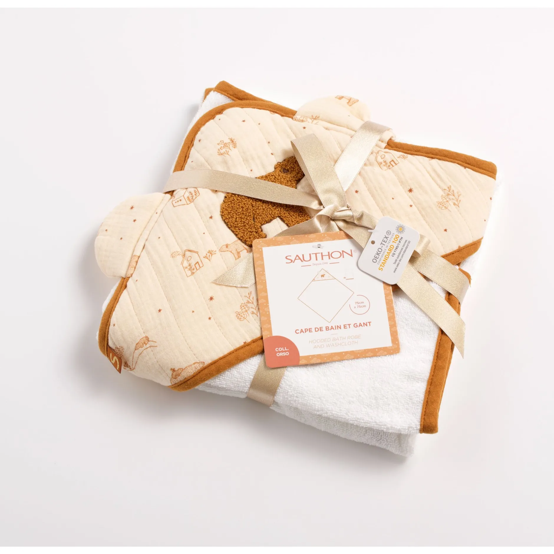 Idéal pour un cadeau de naissance, cette jolie parure de bain Orsino avec son imprimé délicat et ses oreilles ludiques d’Orsino accueilleront volontiers un bébé tout beau tout propre à la sortie du bain !