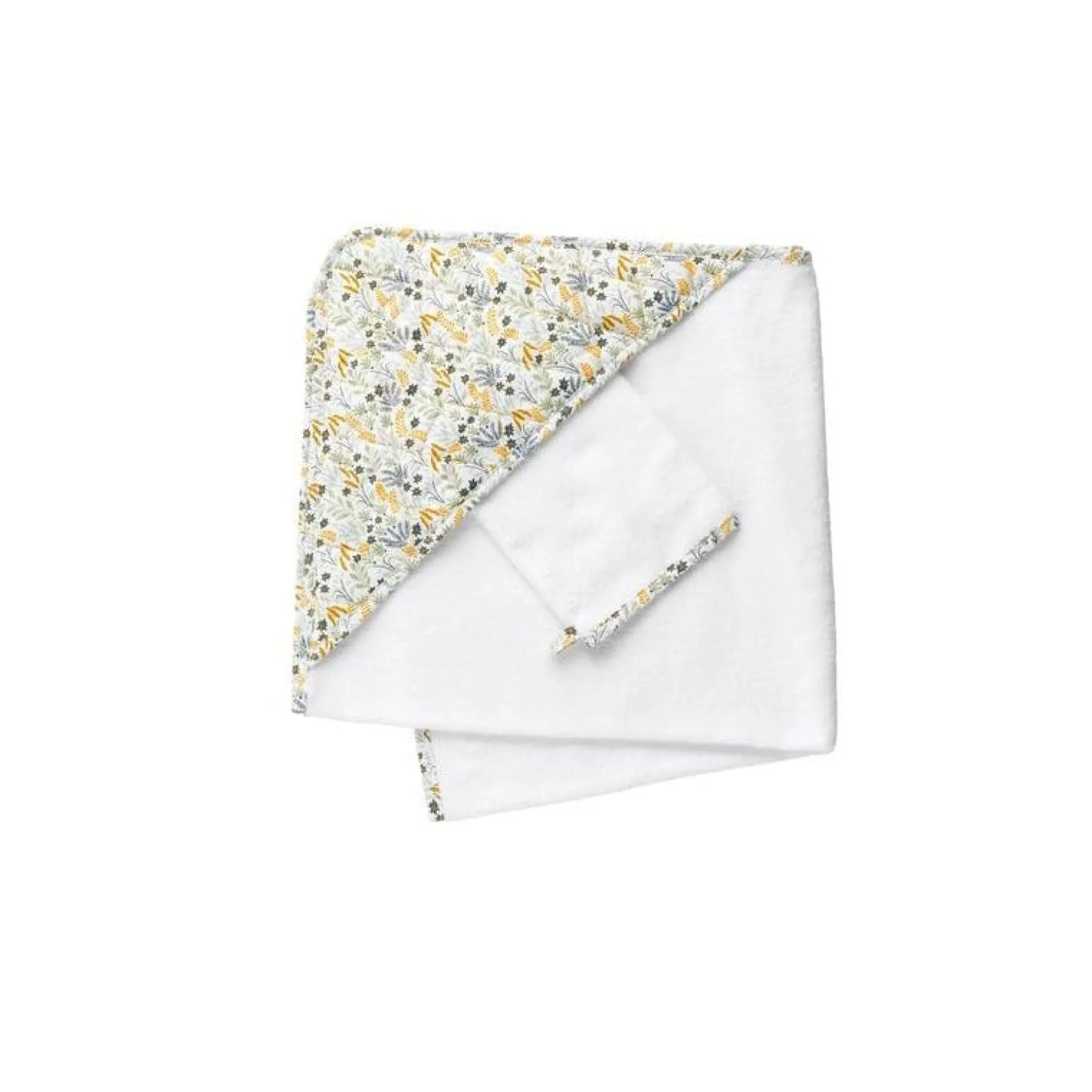 Idéal pour un cadeau de naissance, cette jolie parure de bain Promenons nous avec son imprimé végétal accueillera bébé à la sortie du bain !