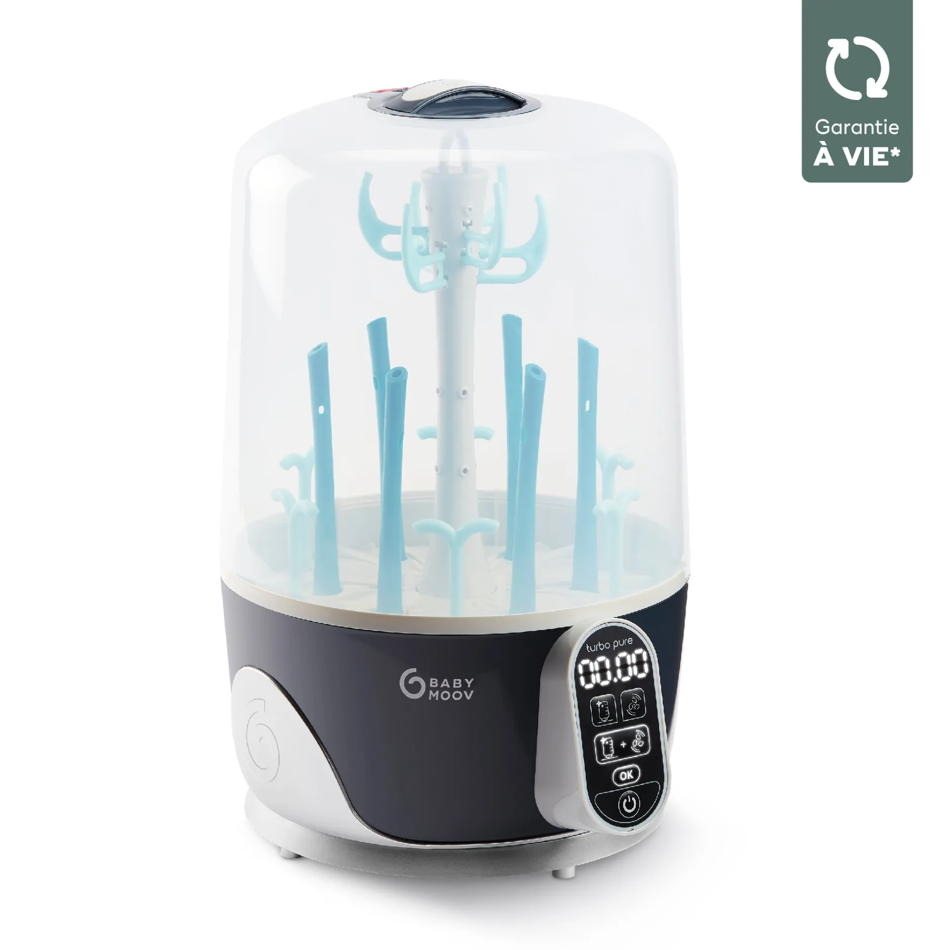 Saviez-vous que le système immunitaire de votre bébé et sa flore intestinale commence à se développer lorsqu’il a 6 mois? Avant cela, votre tout petit est très sensible aux bactéries que l’on peut retrouver un petit peu partout dans notre cuisine. Babymoov et ses parents co-créateurs se sont mobilisés pour vous apporter LA solution ! Du choix des fonctions à la simplicité d’utilisation en passant par le design rien n’a été laissé au hasard 😉 Le Turbo Pure stérilise biberons et accessoires, les sèche et les conserve dans un environnement purifié. Le tout naturellement et simplement !