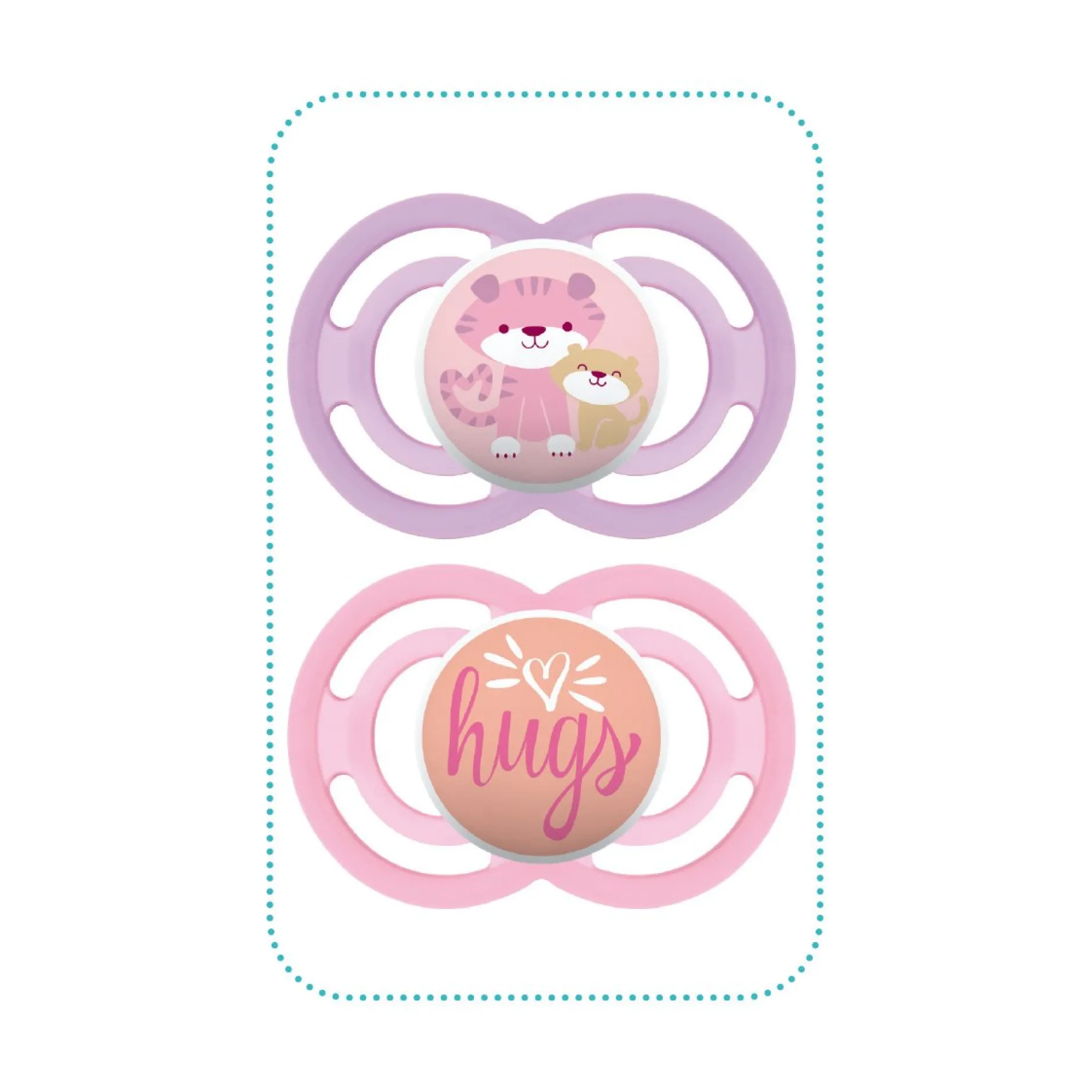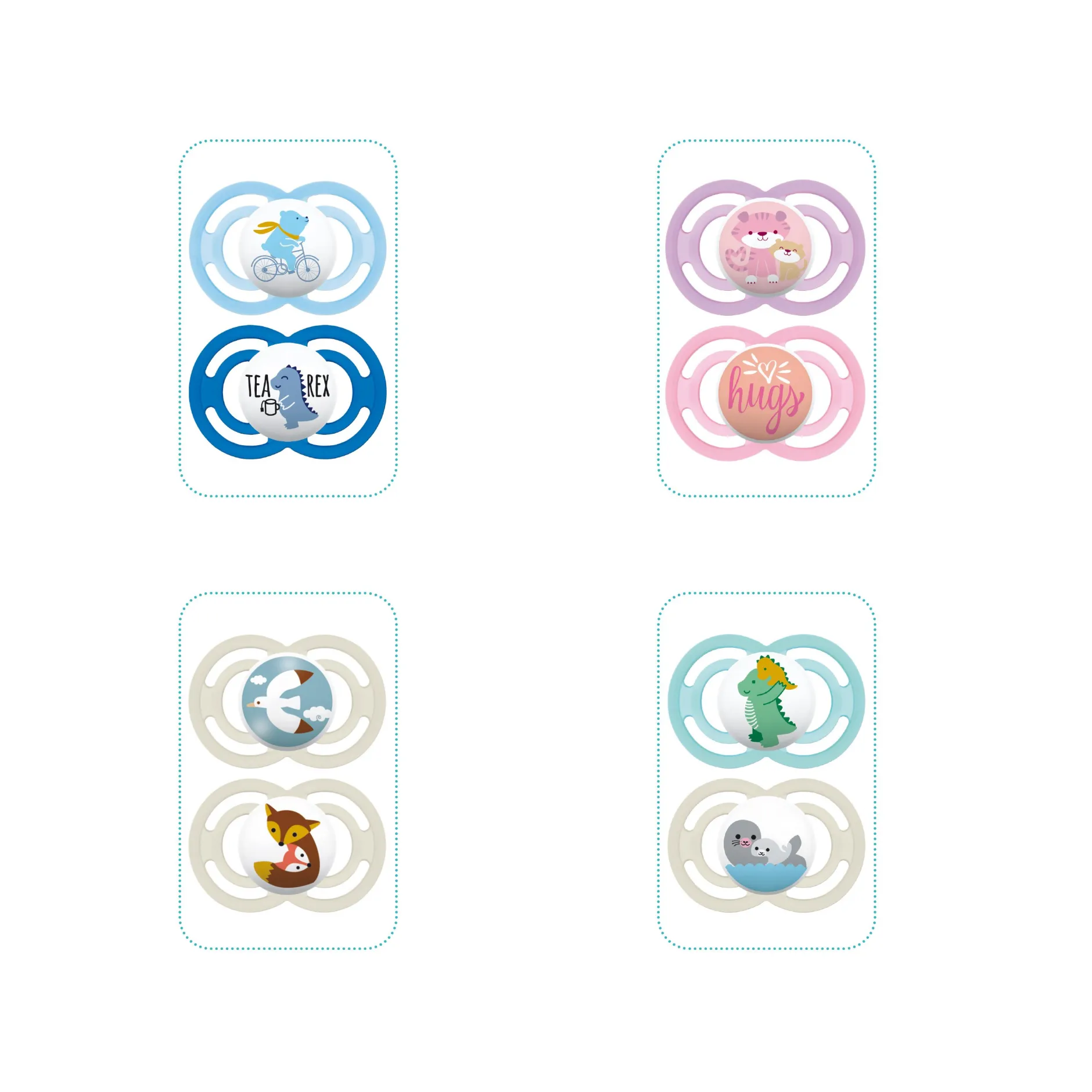 Des études scientifiques et médicales indépendantes ont établi un rapport direct entre l’utilisation de la sucette et le développement maxillofacial ou buccodentaire des bébés. Dès les premières semaines, avant que les premières dents n’apparaissent, les parents devraient choisir une sucette qui favorise un bon développement de la dentition. En règle générale, plus le col de téterelle est mince, souple et adaptable, plus les dents et mâchoires sont préservées.