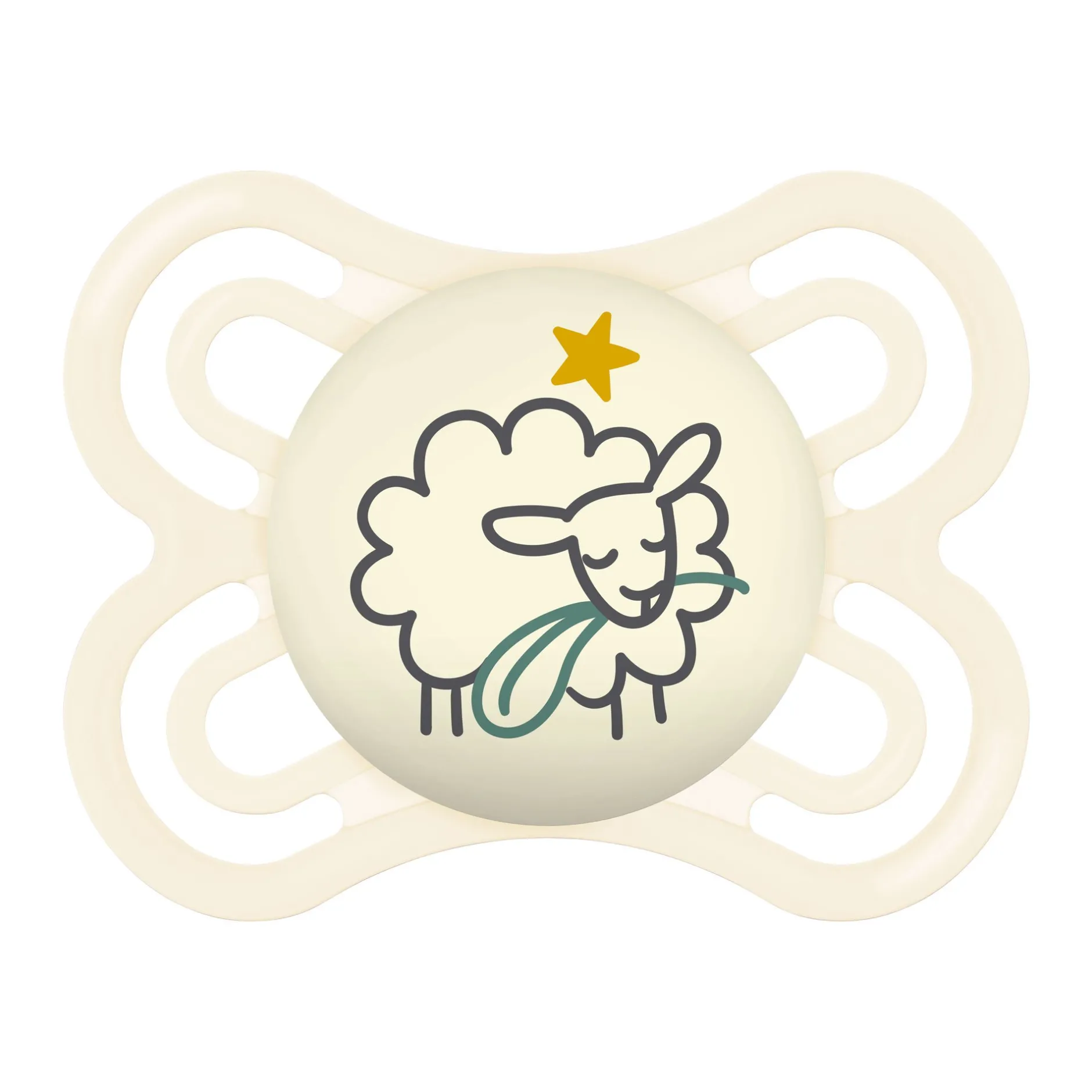 - Sucette conçue pour réduire le risque de mauvais alignement des dents et permettre le bon développement bucco-dentaire.
