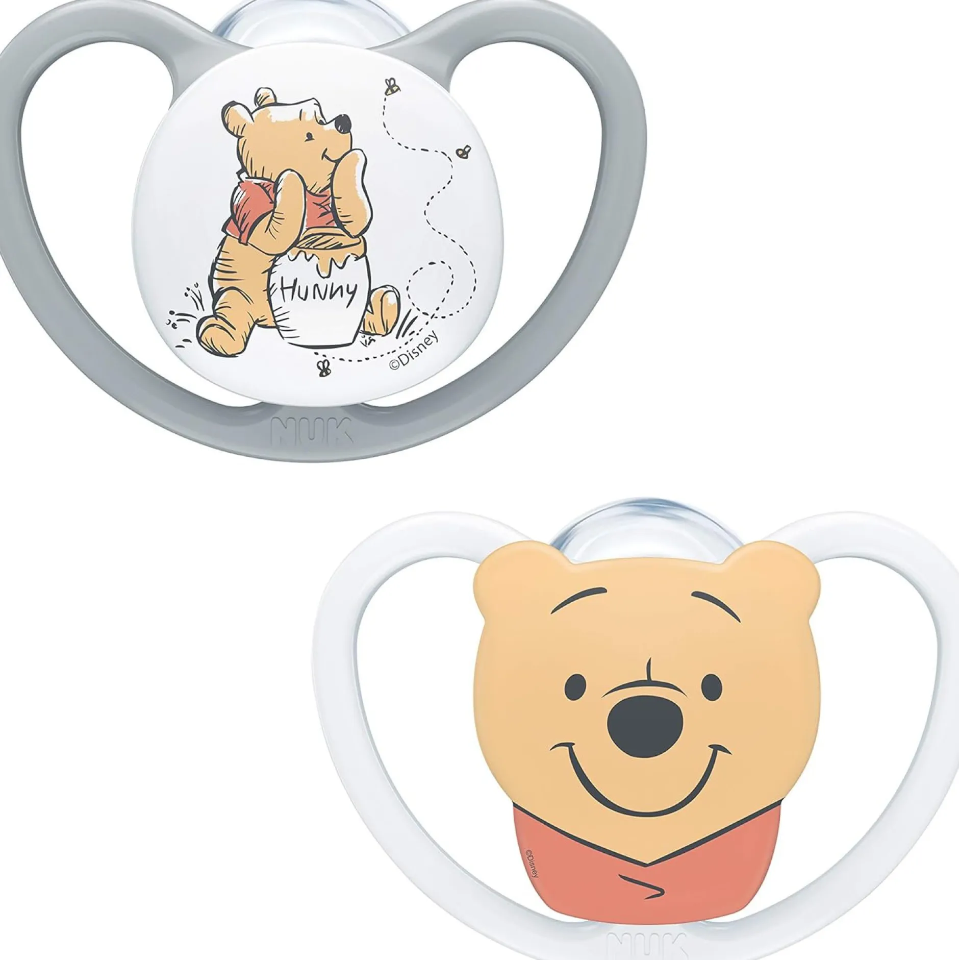 Sucette en silicone Space NUK Disney Winnie l’Ourson, forme physiologique, 2 pièces, gris et blanc Winnie l’ourson et ses amis dans la gamme NUK Winnie l’Ourson, le célèbre ourson en peluche, décore désormais la gamme NUK de motifs qui réchauffent le cœur. Tigrou et bourriquet apparaissent aux côtés de Winnie et son pot de miel sur les produits NUK. Grace à leur courage, leur curiosité et surtout leur amitié, Winnie l’ourson et ses amis vivent des aventures passionnantes.