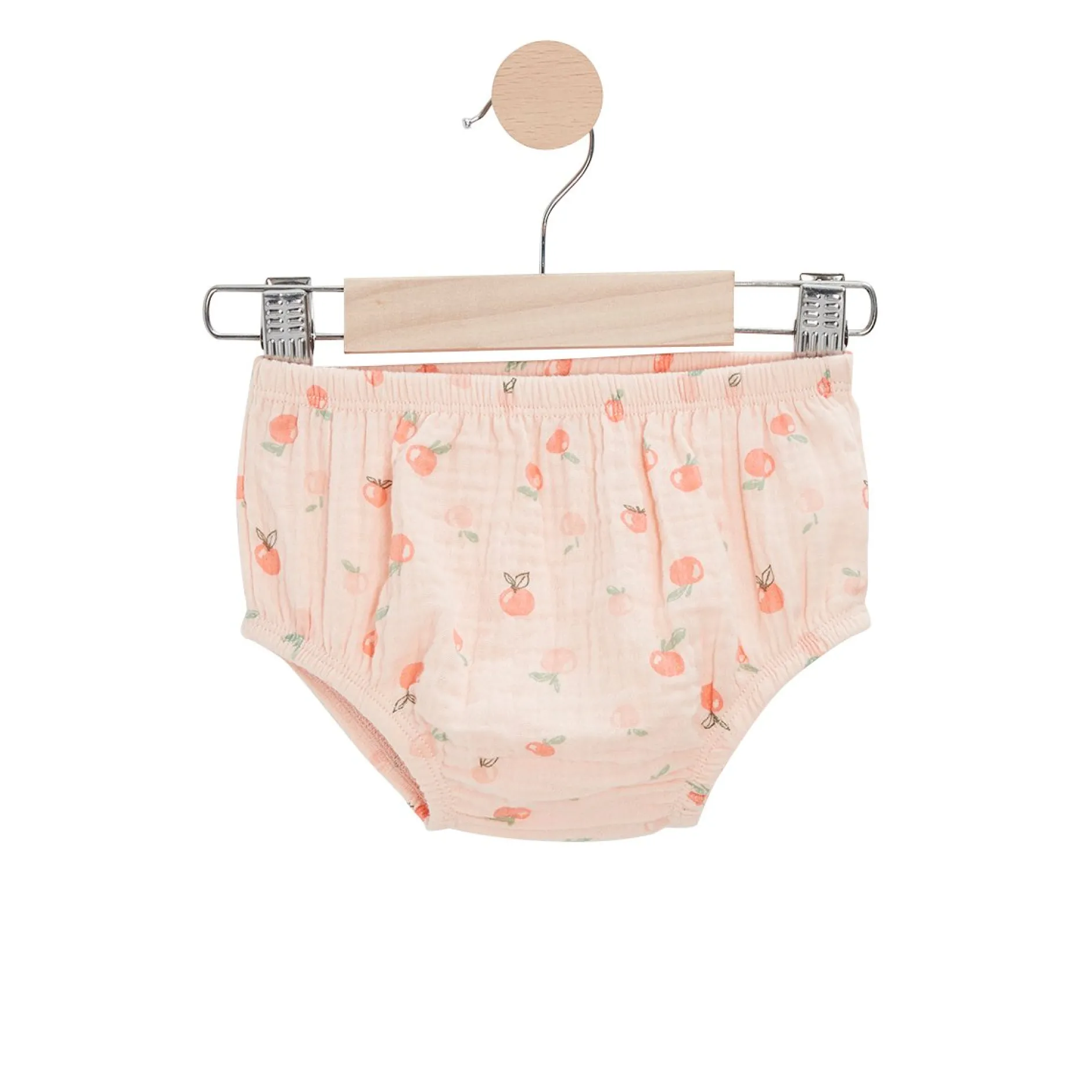 Ensemble 2 pièces P’tit Bisou composé d’un bloomer en mousseline de gaze rose avec petits fruits d’été imprimés et d’une tunique en denim léger bleu clair . Le bloomer est très fonctionnel et pratique par sa matière confort et son élastique à la taille et en Haut des cuisses. . Entièrement élastiqué à la taille, il s’adaptera à toutes les morphologies. La tunique et encolure carrée a une belle animation devant en Bas représentant des fruits d’été. Cette tunique a des fines bretelles avec des petits nœuds de chaque côté. Beau volume donné par des fronces qui partent d’en Haut. Ouverture dos par pressions dans le dos. Cet ensemble ravira les petites filles et surtout les mamans qui bénéficient de 2 pièces à la fois complémentaires et séparables pour un prix unique ! Lavage conseillé à 30°c.