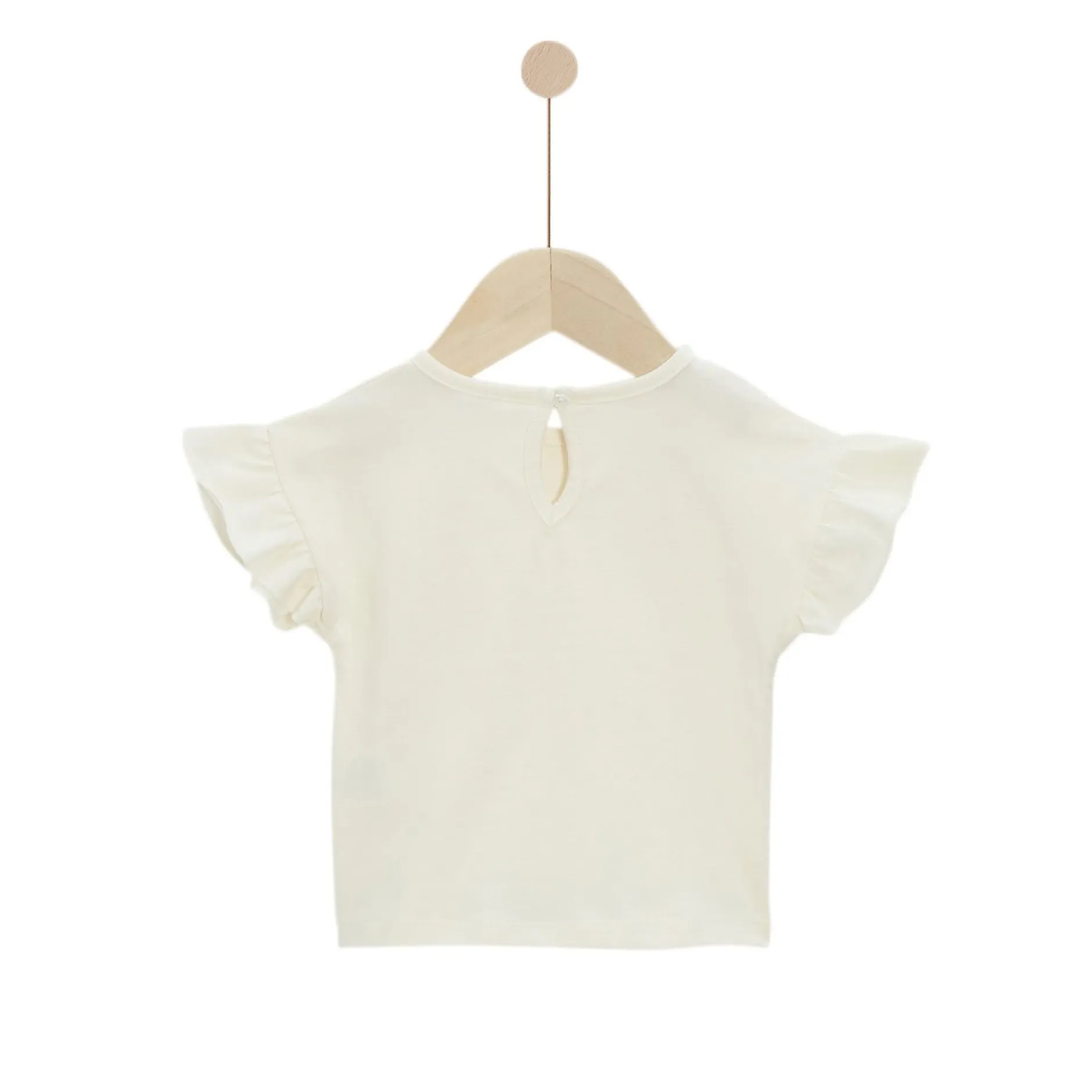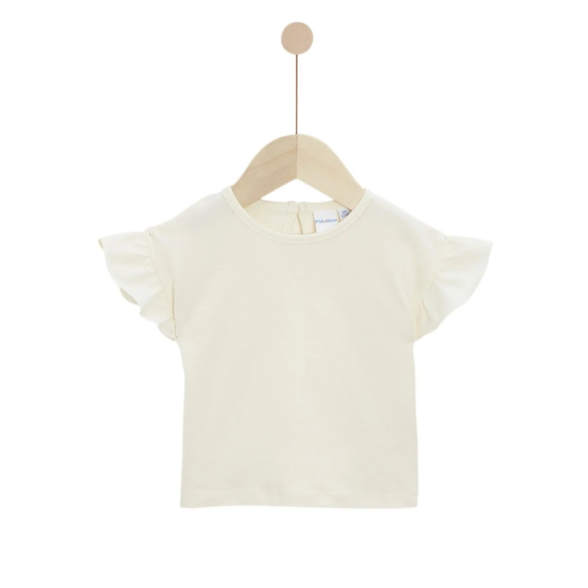 Si vous cherchez un tee-shirt pour parfaire les looks de votre bébé, P’tit bisou petit prix a pensé à vous ! Découvrez ce tee-shirt pour bébé aux manches froncées. Il a été pensé en écru afin d’aller avec tous les vêtements et tous les styles. On l’imagine aussi bien avec une salopette qu’avec un short. Un vêtement polyvalent !