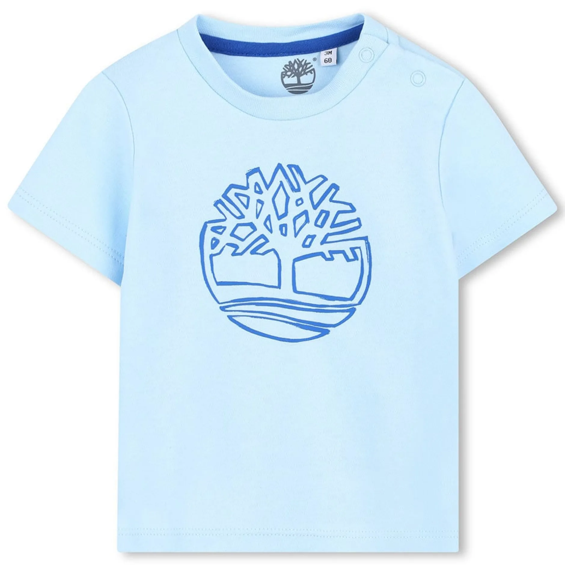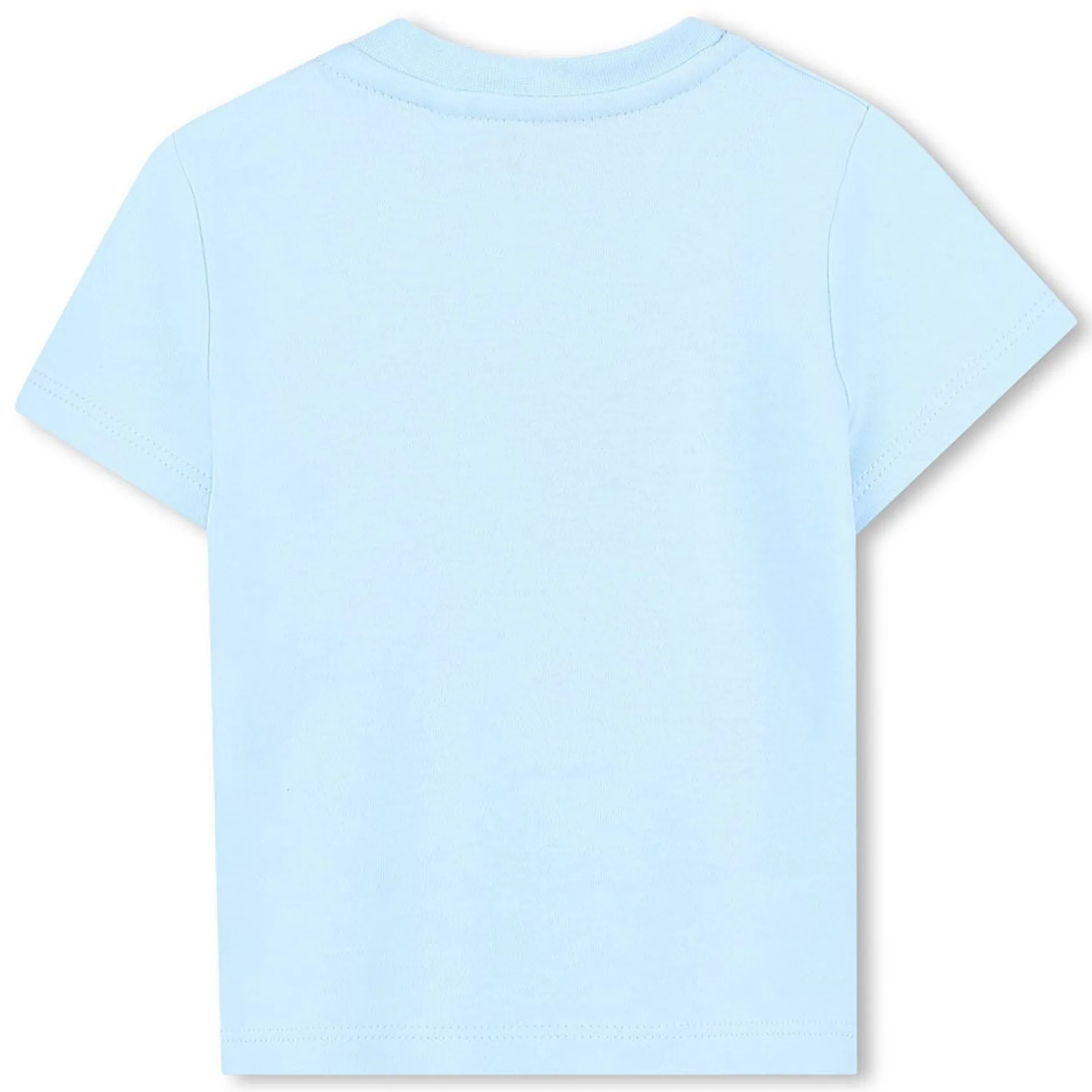 T-shirt manches courtes en interlock 100% coton issu de l’agriculture biologique, fermeture pressionnée à l’épaule, logo imprimé sur le devant.