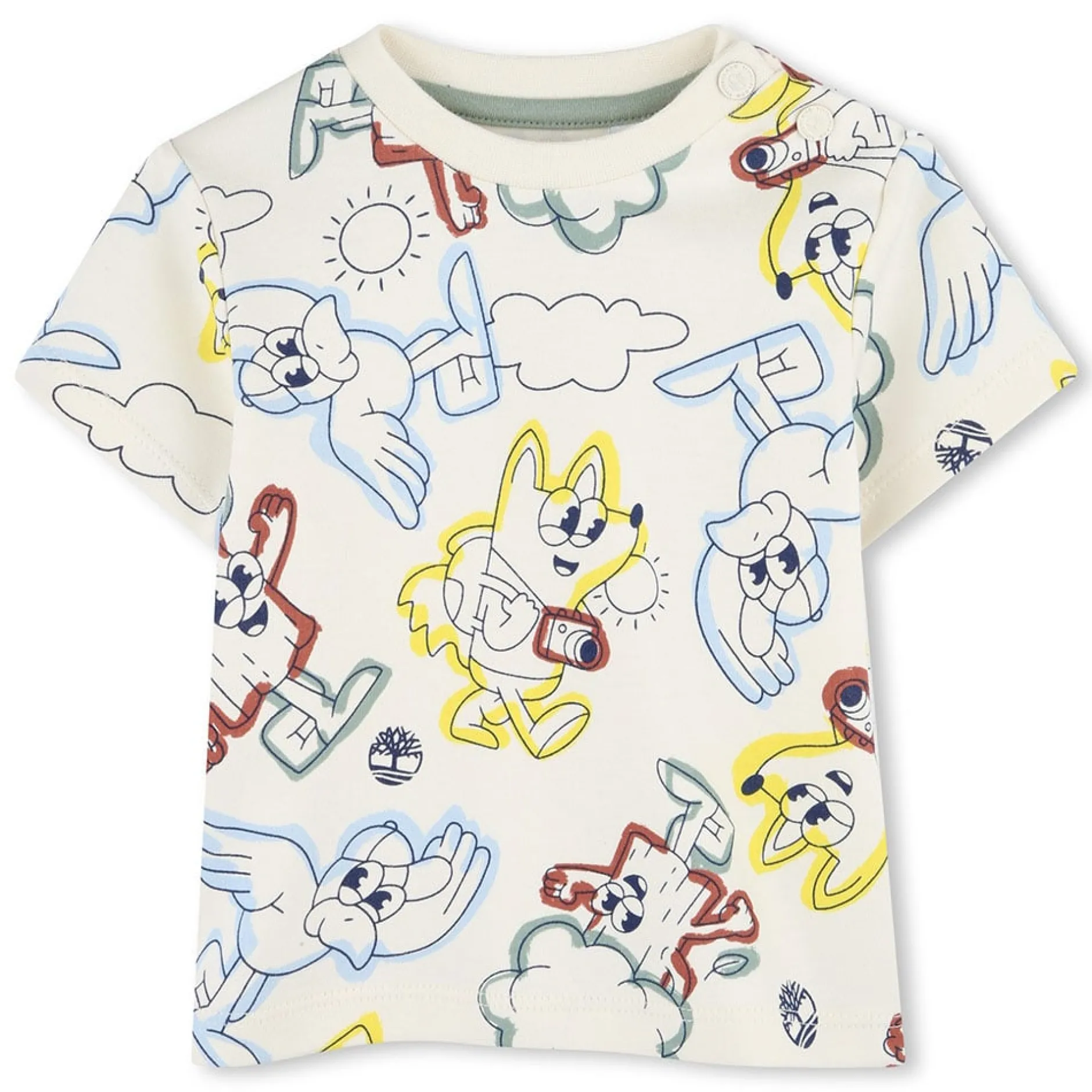 T-shirt manches courtes en interlock 100% coton issu de l’agriculture biologique, imprimé intégral, fermeture pressionnée à l’épaule.