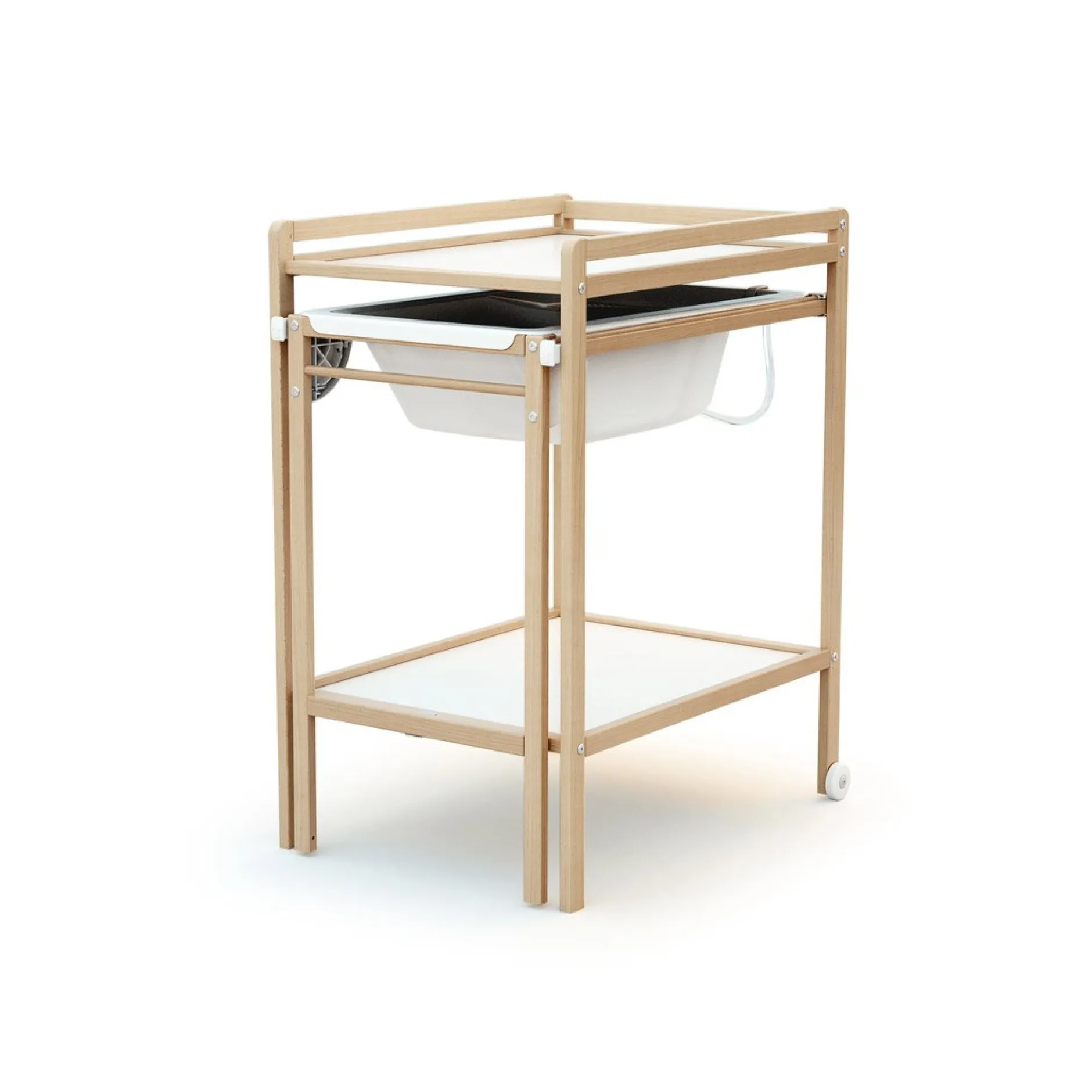 Grâce à ses deux roulettes, elle se déplace facilement et s’intègre aussi bien dans la salle de bain que dans la chambre de bébé, quelles que soient ses dimensions.