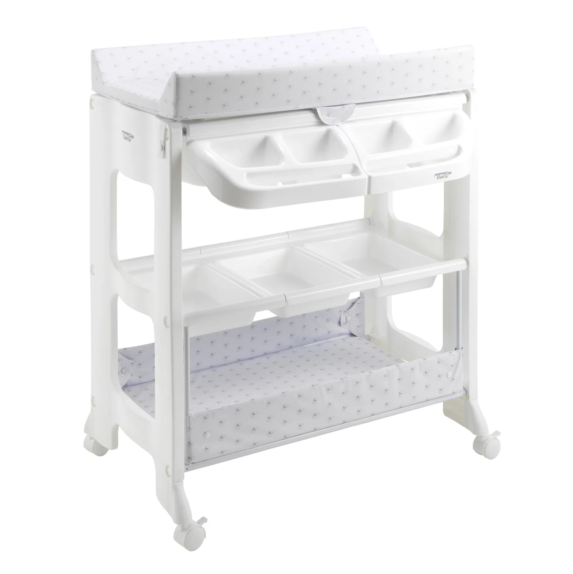 Pratique et confortable, la table à langer FORMULA baby est également équipée de bacs de rangement amovibles et spacieux, qui vous permettront d’attraper et de ranger rapidement vêtements, couches, lingettes, crème hydratante ou encore thermomètre de bain en un coup de main ! De quoi avoir tout le nécessaire tout le temps à portée de main.