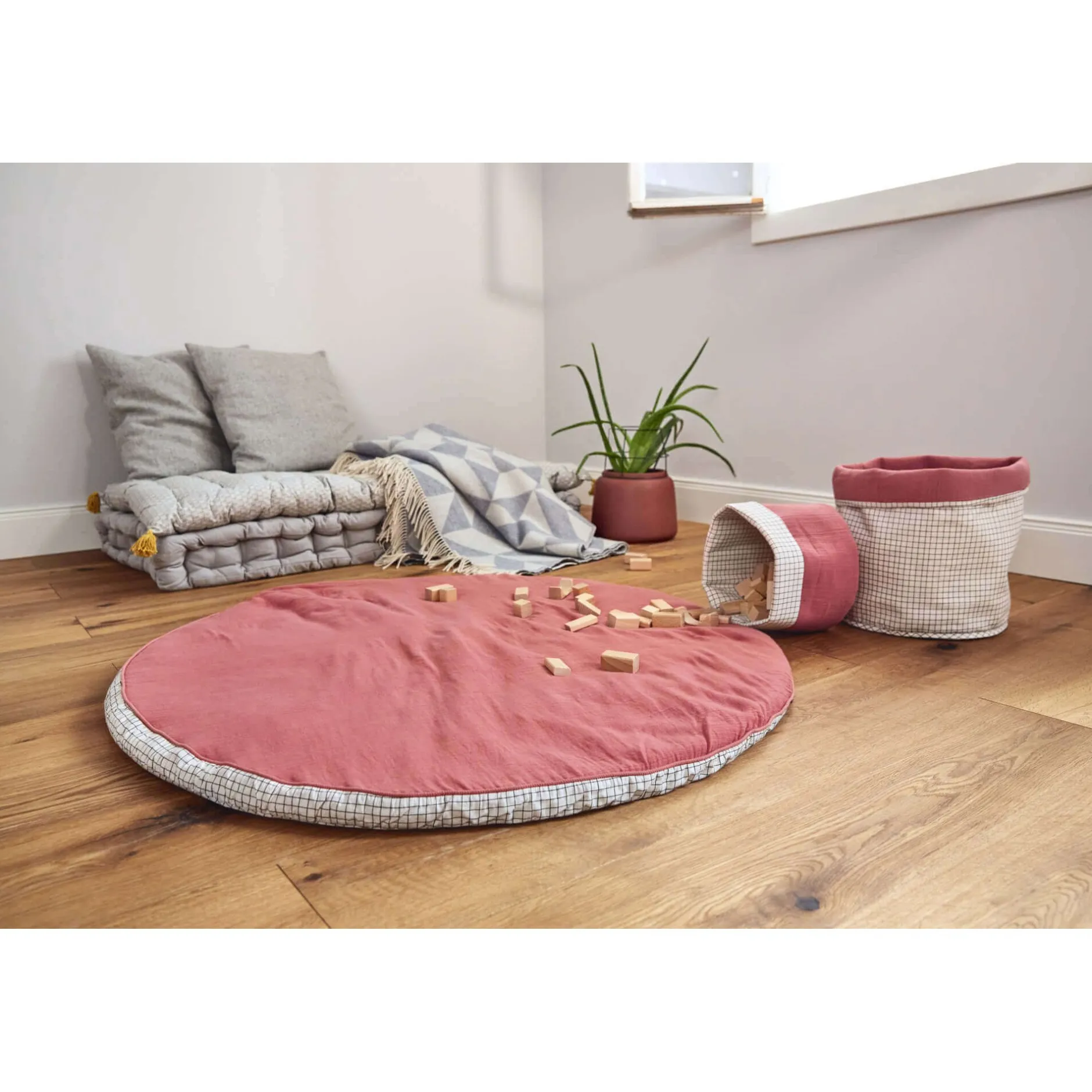 Coussin de sol, couvertures d’éveil, tapis de jeux, coussins et couvertures de dessous : tout en un ! Le coussin rond et sobre de LÄSSIG en coton bio offre suffisamment de place aux enfants pour jouer, se défouler ou se reposer. Étant bien rembourré, les petits peuvent s’allonger sur le coussin moelleux et douillet posé sur le sol ; lorsqu’ils jouent, ce coussin rond tient chaud et amortit les chocs. Cette combinaison de gaze de coton unicolore aux structures modernes et de tissu percale à carreaux résistant est moderne et colorée à la fois, et convient merveilleusement bien dans toutes les chambres d’enfants.