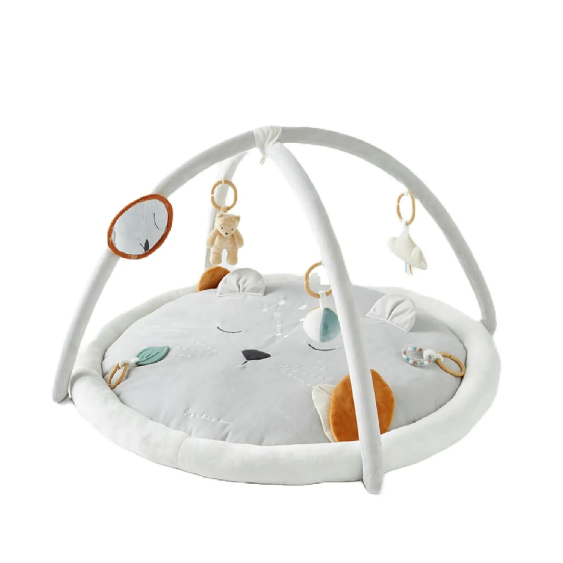 - Entretien : Tapis: lavable à 30°C – arche/miroir/activités: lavable en surface uniquement