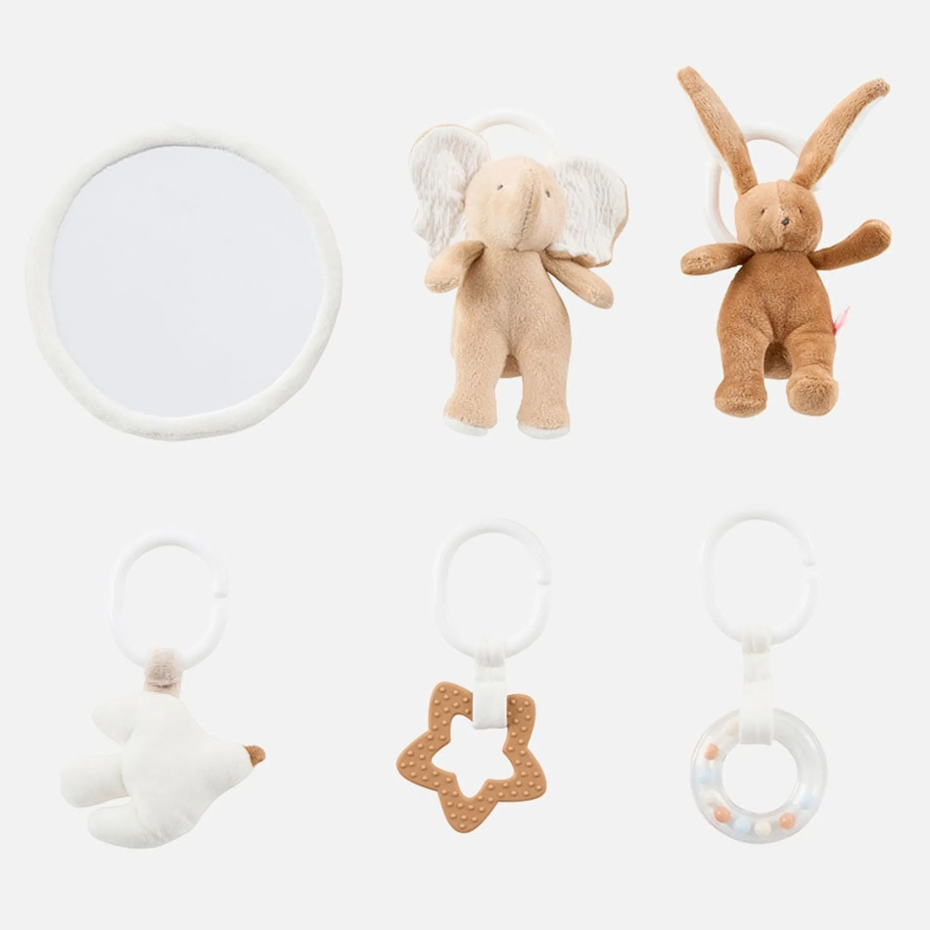 - Activités nombreuses et variées : 1 clochette, 1 pouet, 3 éléments en papier froissé, 1 miroir, 1 jouet de dentition et 1 hochet