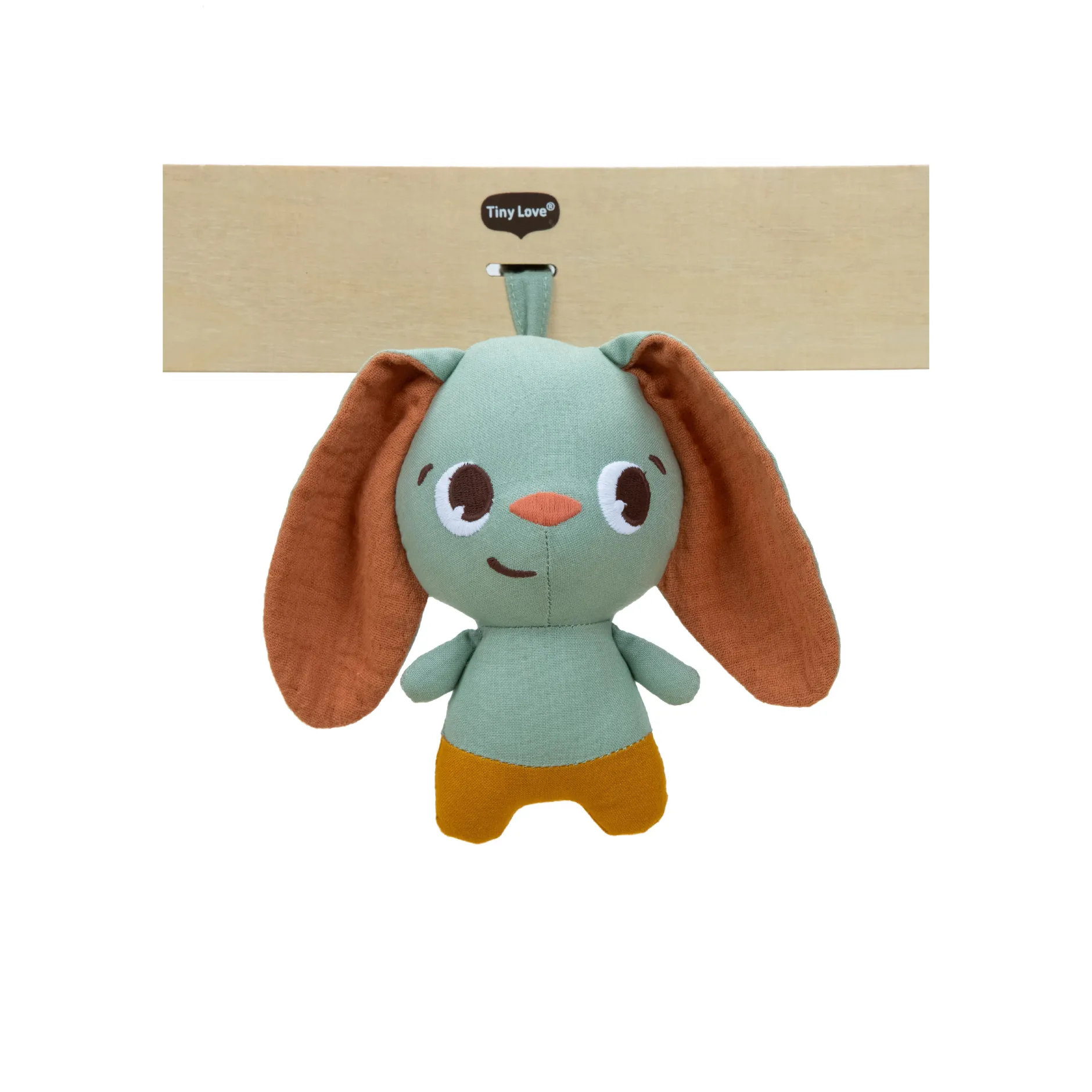 - Lapin en peluche : adorable personnage aux oreilles douces en mousseline, parfaite pour la maison ou en balade. Ce jouet génial permet de s’amuser ensemble, tout en aidant à développer la motricité fine.