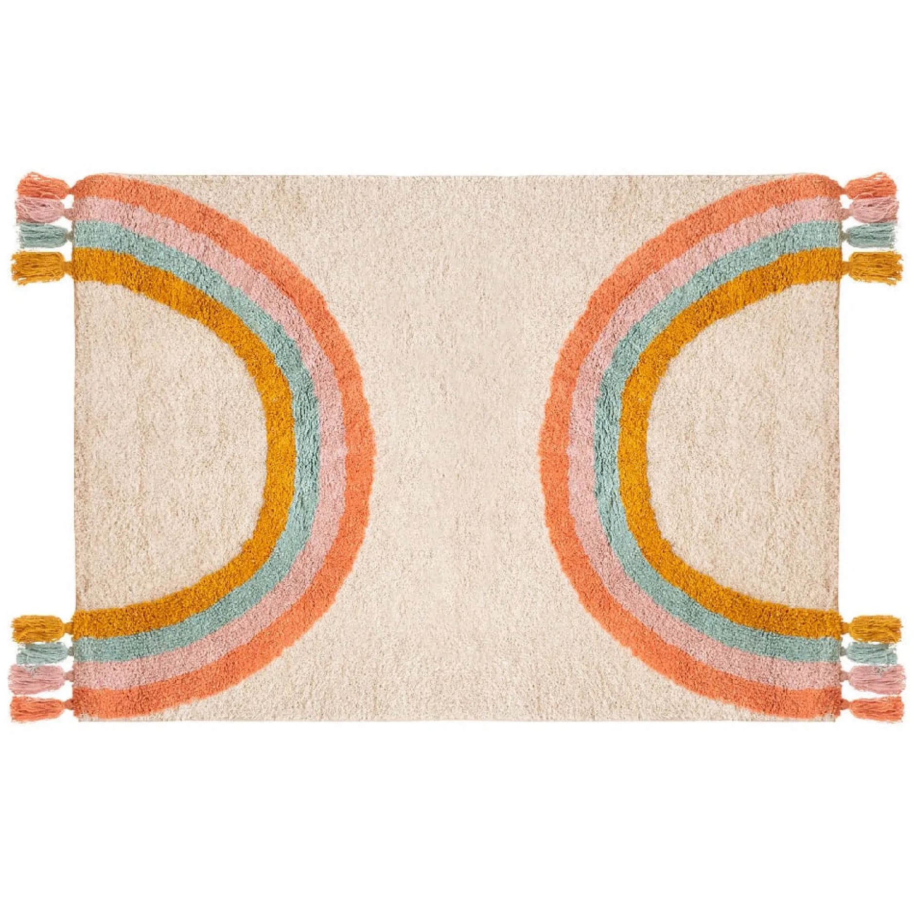 Rectangulaire et de format généreux, le tapis enfant « Carte » est réalisé en coton tufté. Des arcs-en-ciel finis par des franges habillent les deux extrémités, créant un style à la fois ludique et gai.