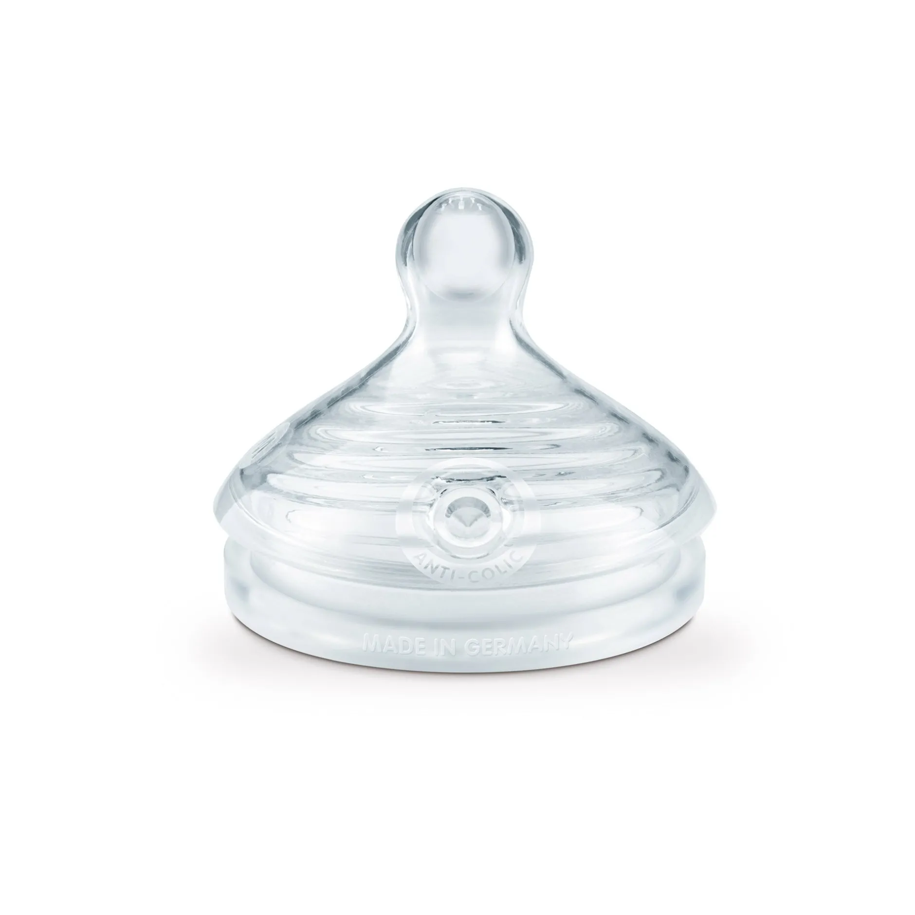 - Anti-colique + : nouvelle valve de ventilation au design unique qui évite l’avalement d’air