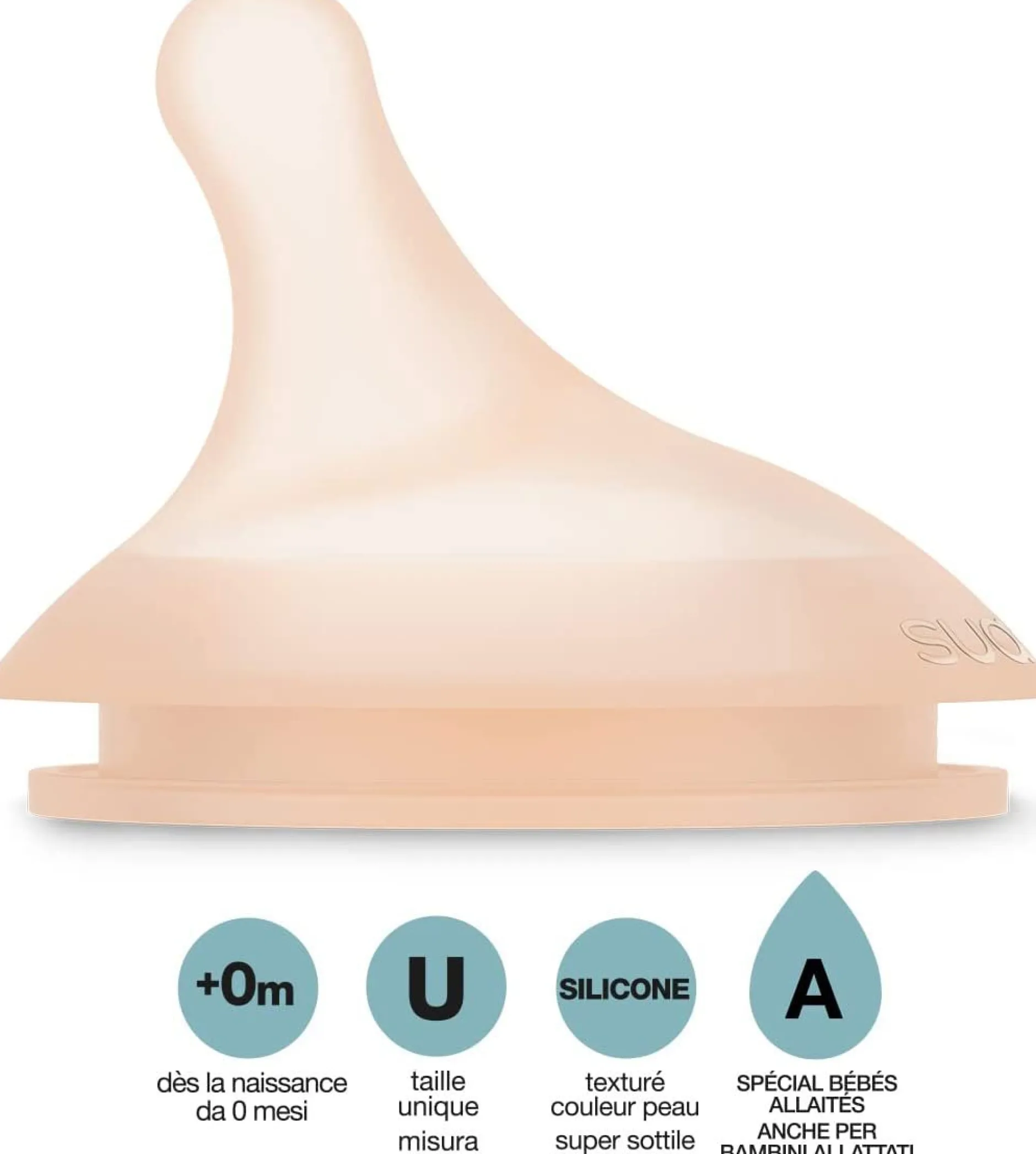 Tétine en silicone ultra-douce imite le mamelon maternel dans sa forme, sa longueur et au toucher. Conçue pour le biberon ZERØ.ZERØ.