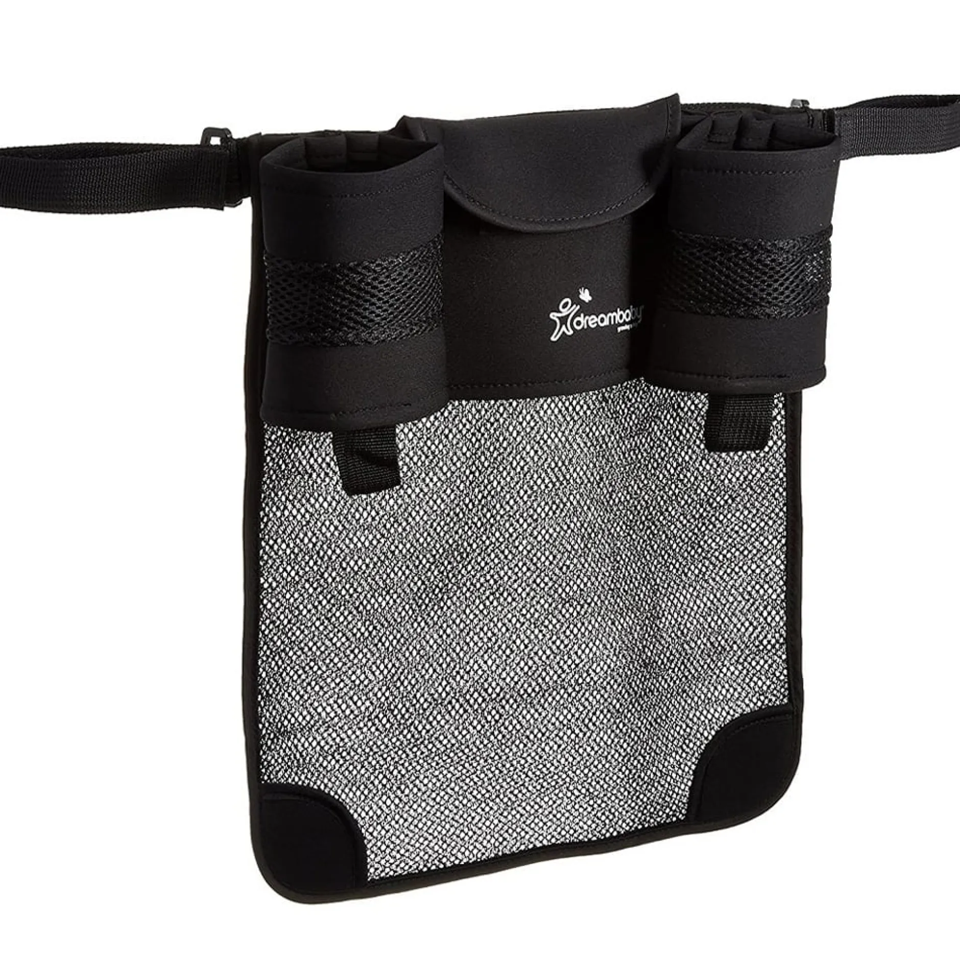 L’organisateur de poussette Dreambaby Strollerbuddy G287 rend les déplacements avec les enfants plus faciles et plus sans stress que jamais. Enroulez la sangle autour de la poignée de la poussette, passez à travers l’anneau en D et fixez le tissu auto-agrippant.