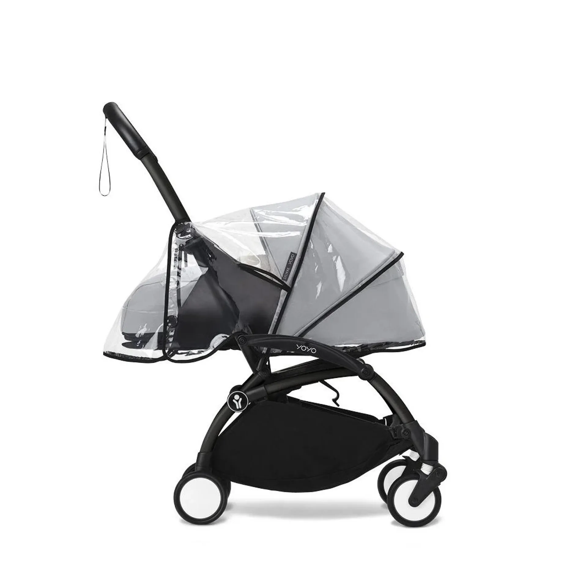 Il existe des protections pluie adaptées à YOYO en pack nouveau-né, nacelle et pack couleur 6+. Elles sont faciles à installer et se rangent rapidement dans le panier de la poussette quand le beau temps revient.