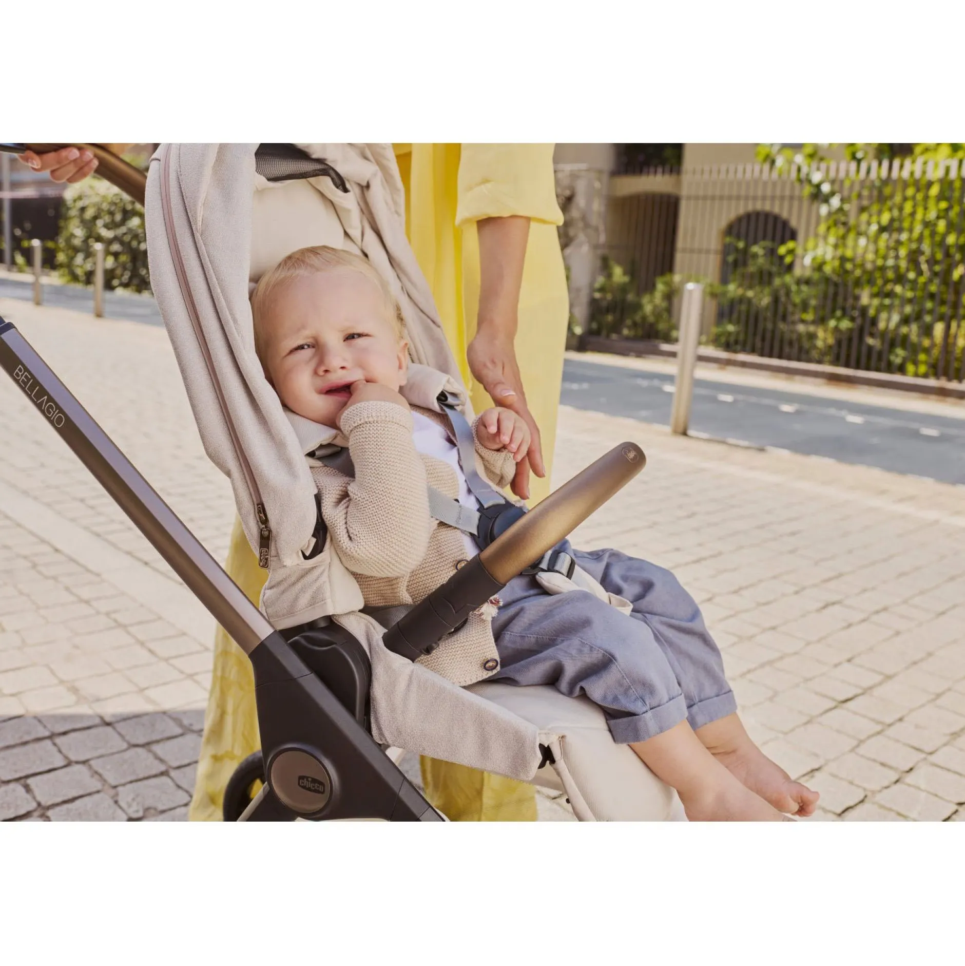 La poussette Bellagio est une pièce de design : des tubes anodisés premium aux badges métalliques Chicco et aux tissus de qualité, chaque détail a été soigneusement conçu pour rendre la poussette mémorable.