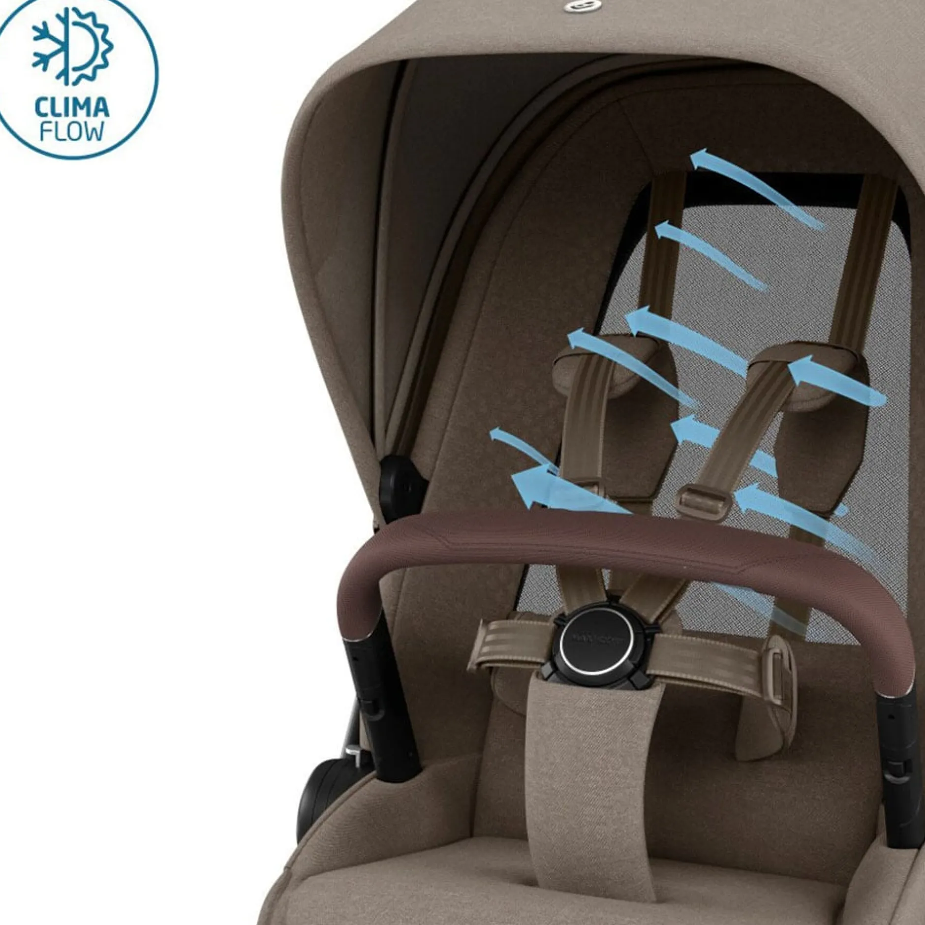 L’assise ergonomique de Fame offre un espace luxueux à votre enfant, qu’il dorme en position allongée ou qu’il soit assis et profite de la balade. L’assise est doté d’un rembourrage doux et d’une maille respirante ClimaFlow pour une régulation optimale de la température, ce qui permet à votre enfant de rester à l’aise tout au long de l’année. Le canopy extensible UPF 50+ offre une protection solaire maximale à votre enfant et une fenêtre d’aération transparente.