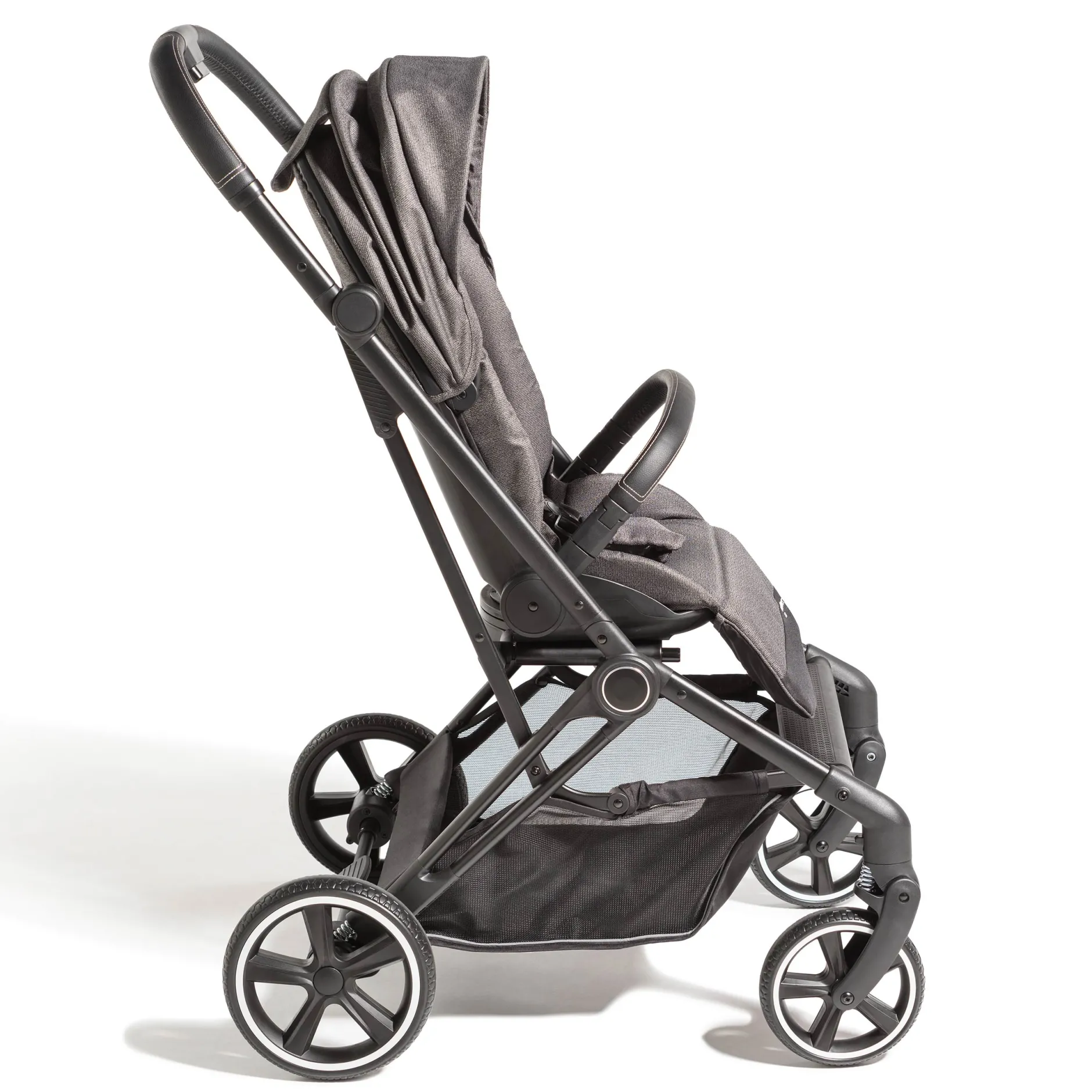 D’un geste de la main l’assise réalise une rotation pour vous permettre d’avoir bébé soit face au pousseur, soit face au monde. Elle offre une position d’assise très droite pour les enfants en demande, mais également plusieurs inclinaisons ainsi qu’une position totalement allongée afin d’offrir une sieste confortable si la fatigue se fait sentir.