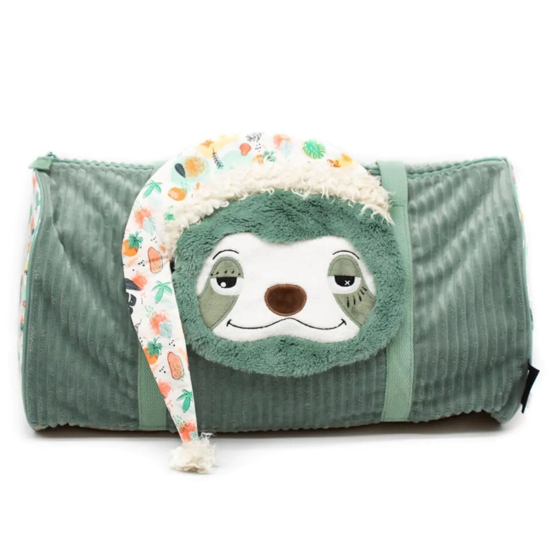 Pas question de partir en voyage sans son sac week-end Chillos le paresseux en velours côtelé vert !