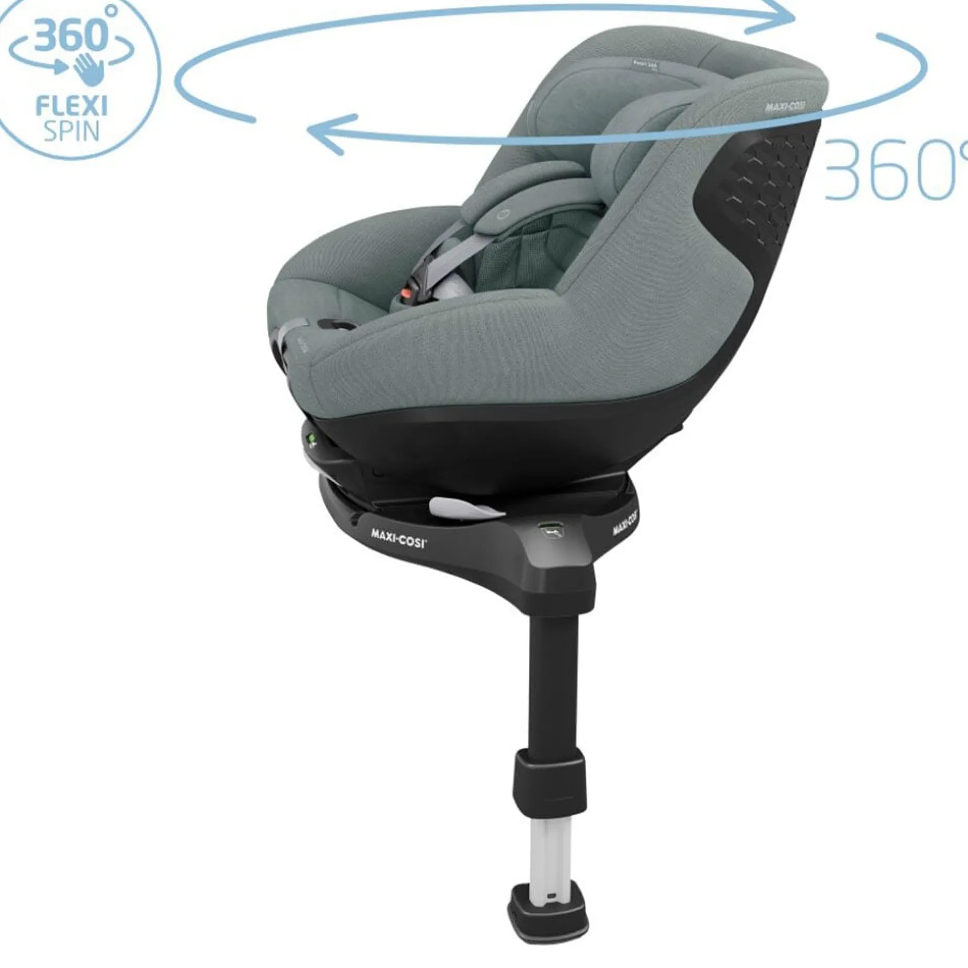 - Rotation à une main FlexiSpin : La base FamilyFix 360 Pro (vendue séparément) comprend FlexiSpin, un système de rotation à 360° qui permet de faire pivoter facilement le siège-auto Pearl 360 Pro d’une seule main, dans n’importe quelle position d’inclinaison.