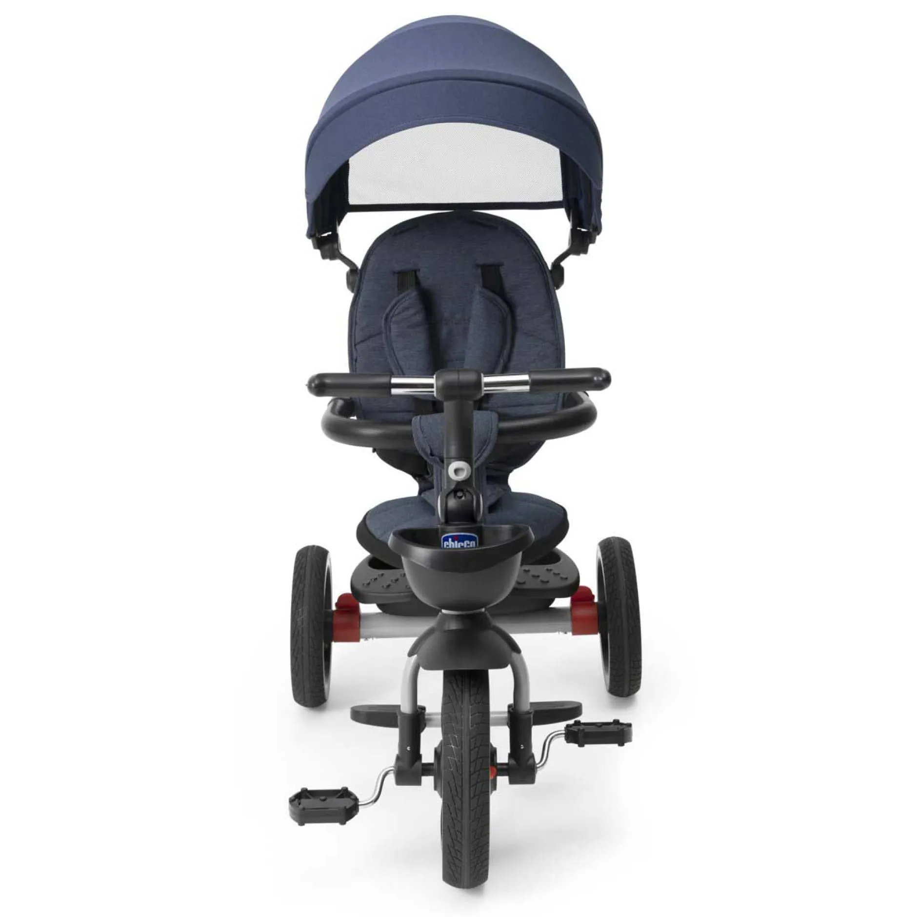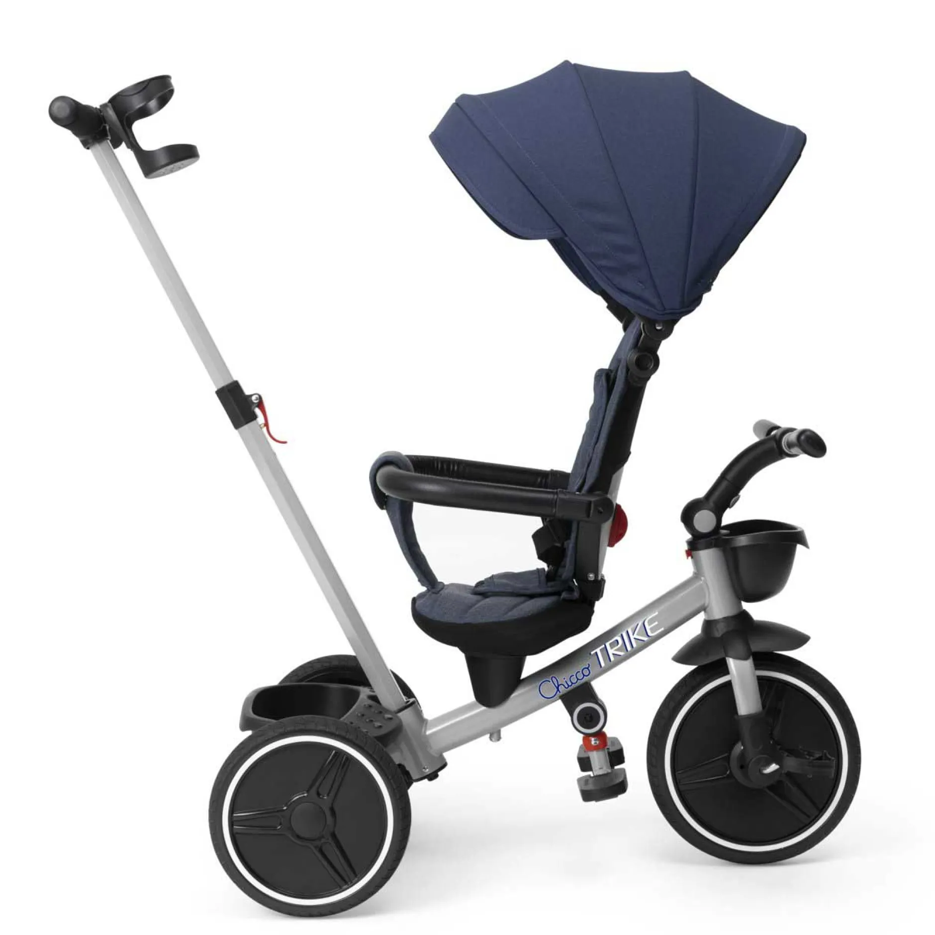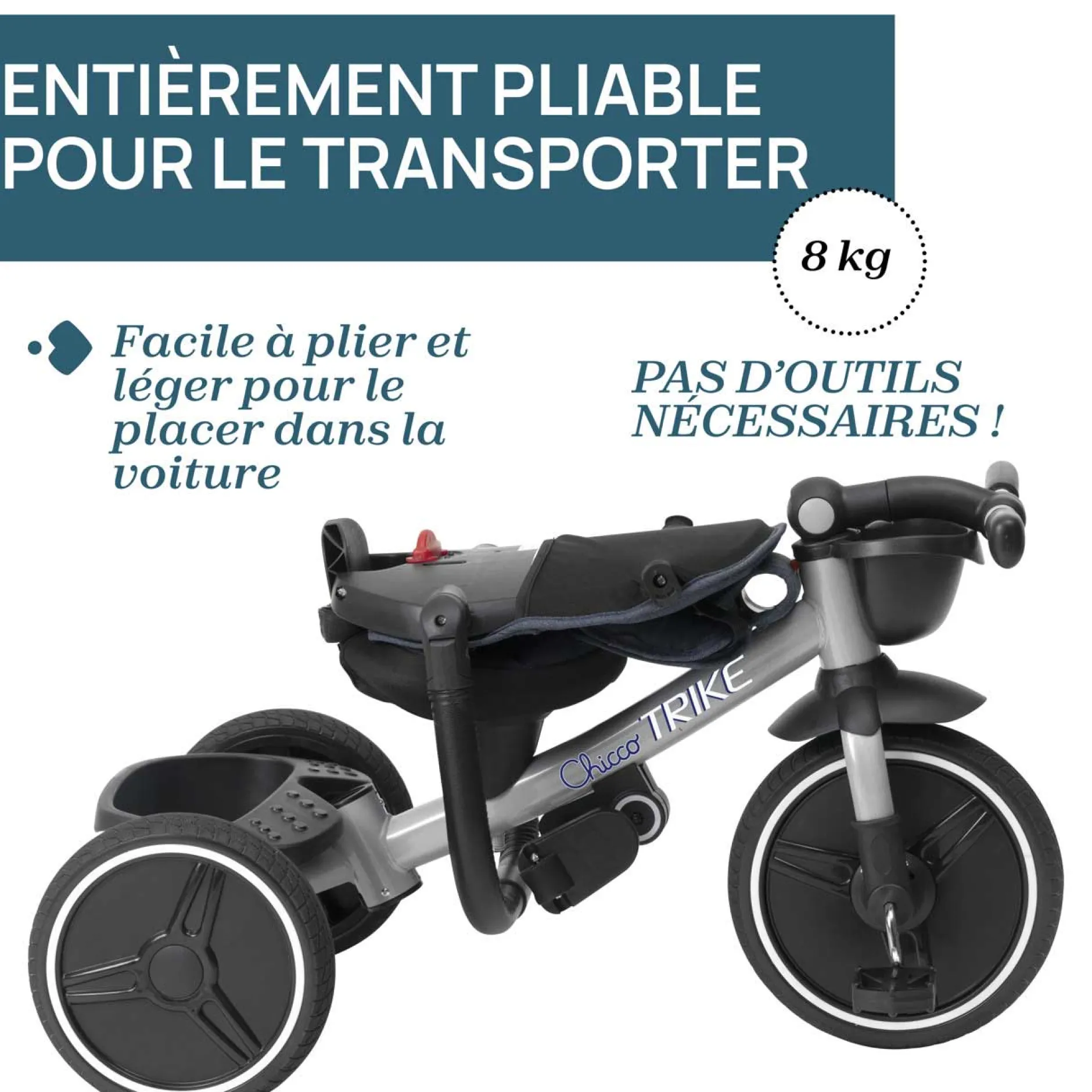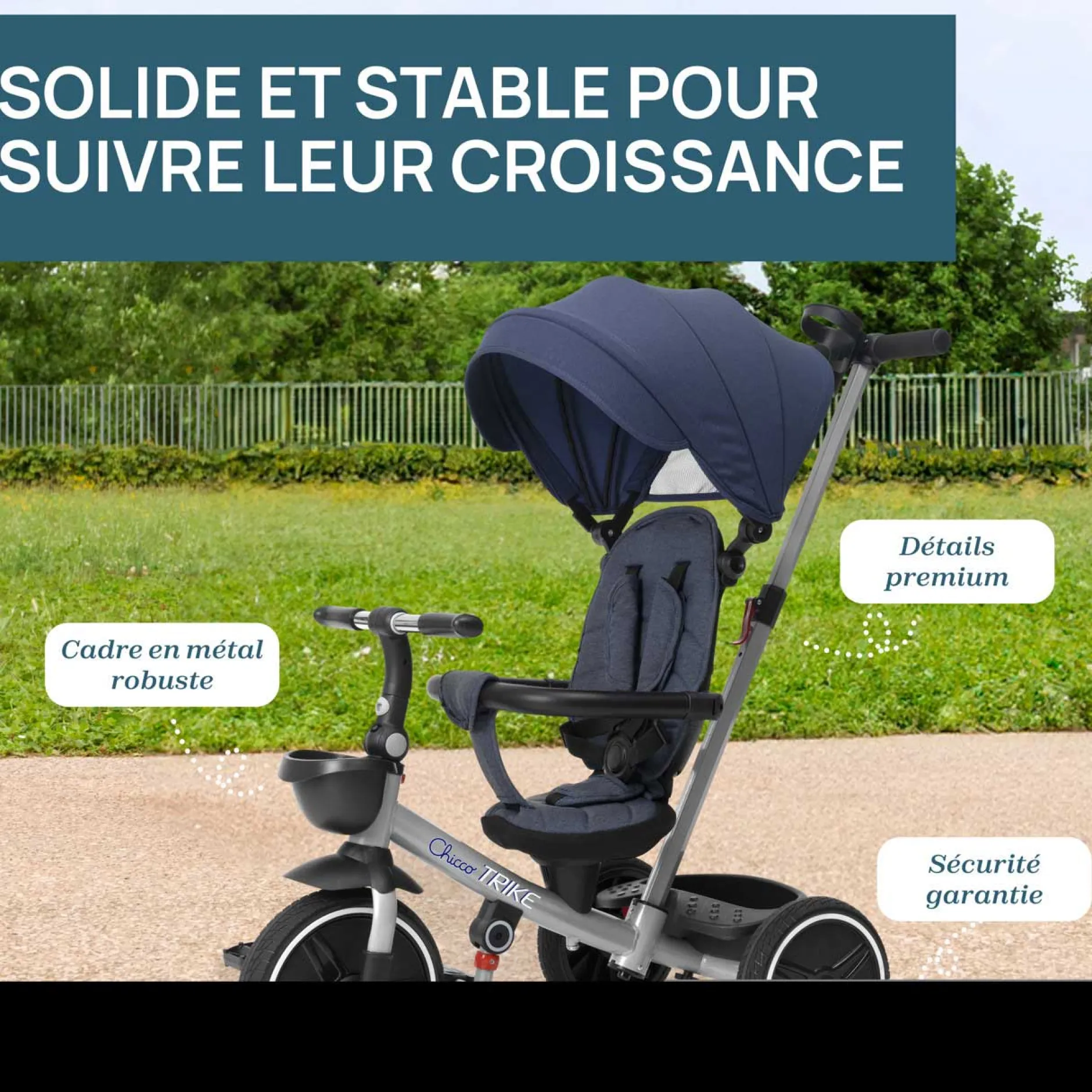Cadre en métal robuste, poignée télescopique amovible permettant aux parents de diriger le tricycle, panier arrière et avant, porte-gobelet