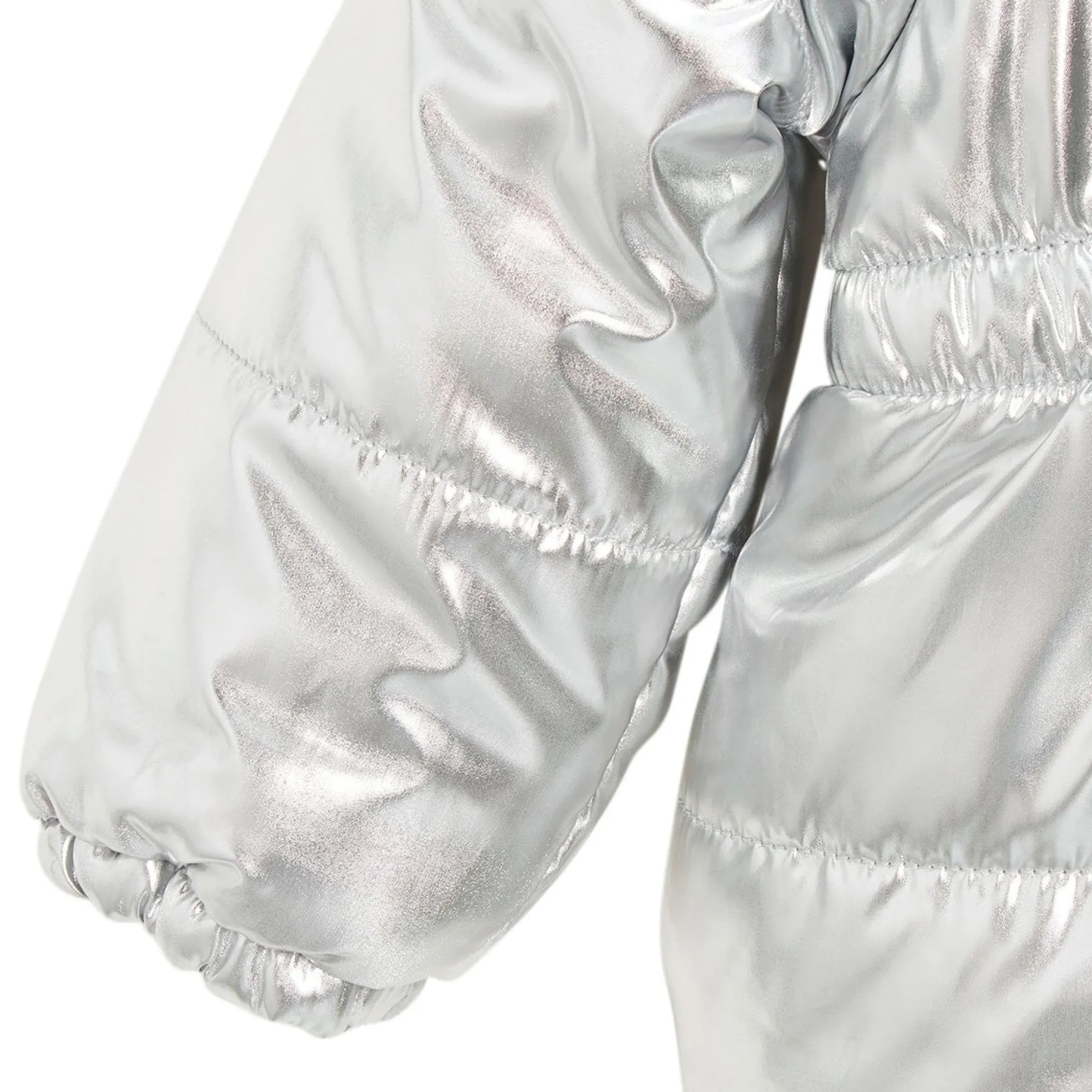 Parka Marèse façon doudoune en nylon argenté très tendance. La matière est traitée déperlante et waterproof. Entièrement doublée de polaire noire très douce et ouatinée pour plus de confort et de chaleur. La capuche est attenante. La parka a un matelassage avec des surpiqûres à l’horizontal pour un beau look moderne. Ouverture par zip devant. A noter, sa forme cintrée pour un côté très féminin et raffiné. Cette belle pièce sera l’alliée des petites filles pour affronter les frimas de l’hiver tout en conférant un super look tendance ! Lavage à 30°C.