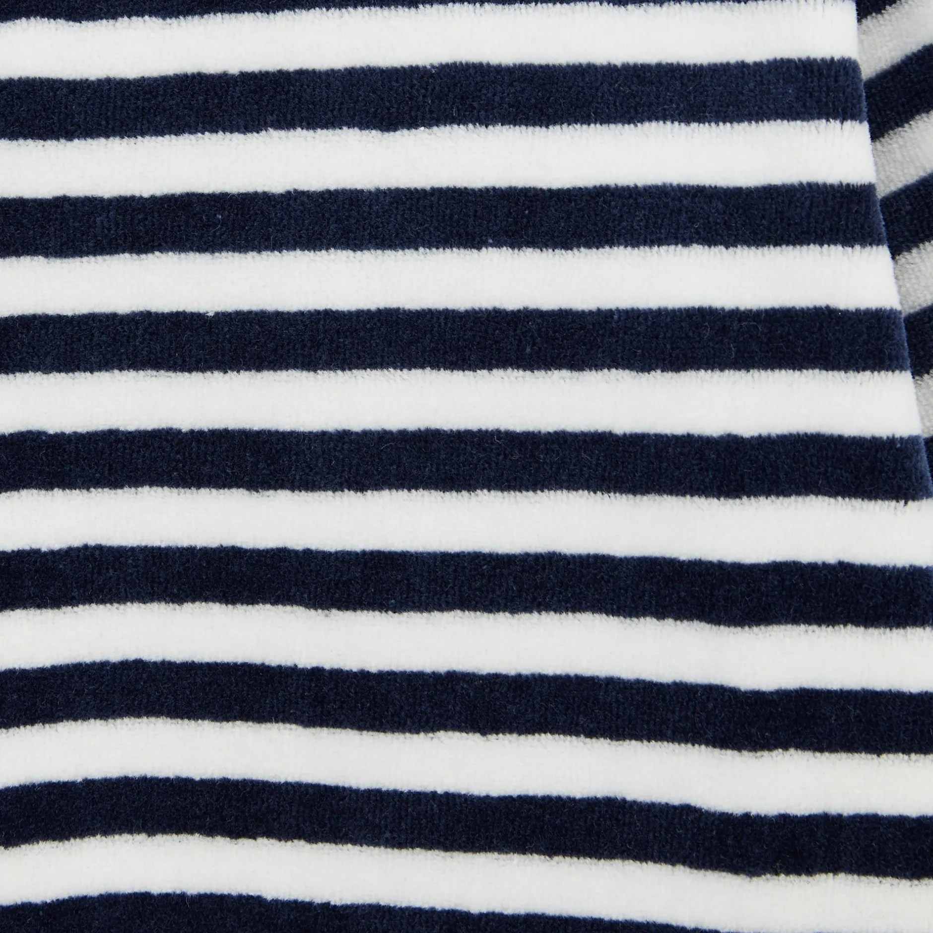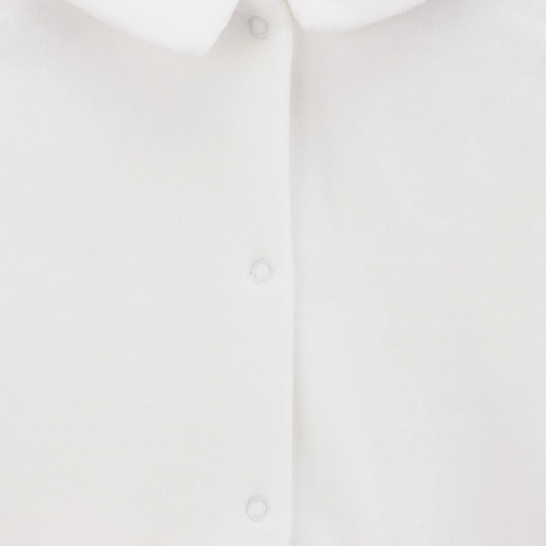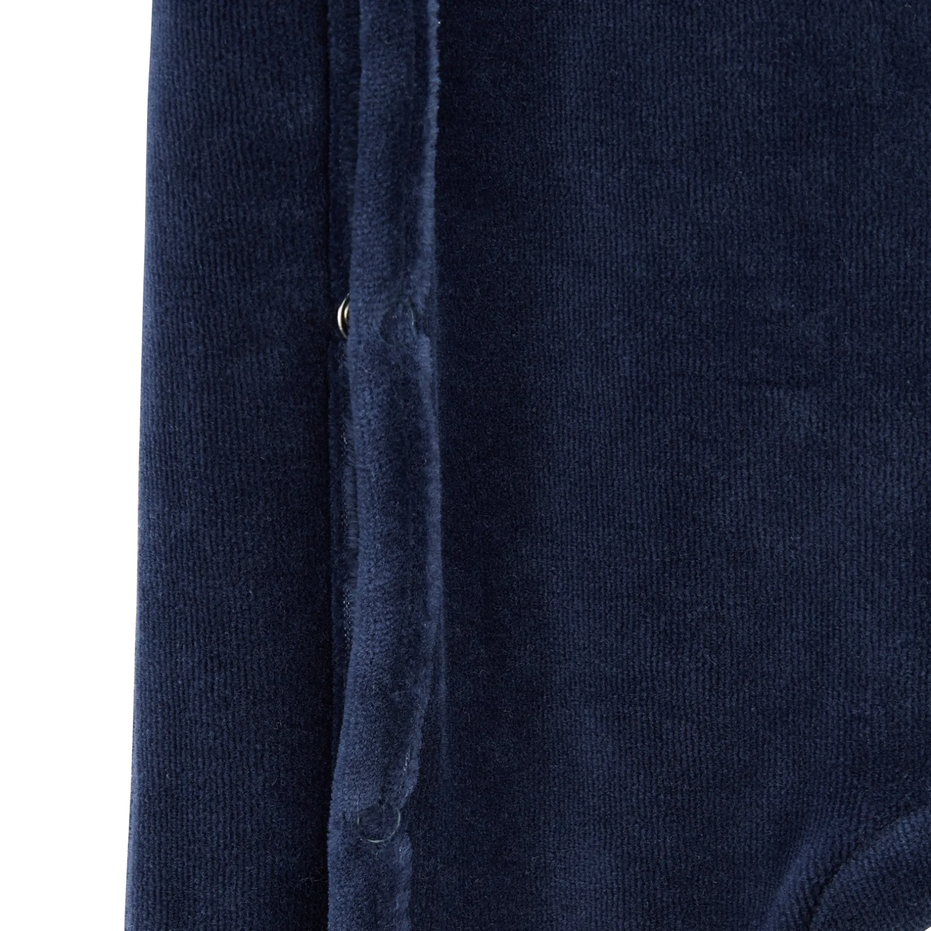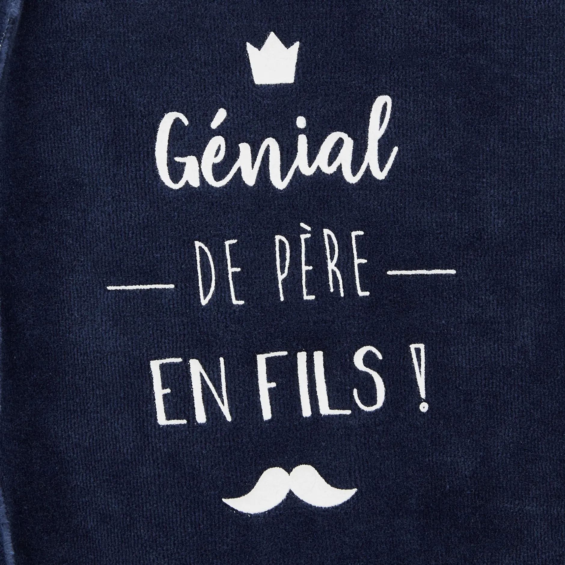 Lot de 2 Pyjamas P’tit Bisou en velours tout doux : 1 en bleu marine avec un texte « génial de père en fils » et 1 à rayures écru/bleu marine. Les 2 ont une ouverture devant par pressions pour plus de fonctionnalité et faciliter le change de bébé. Un lot totalement confort et mode qui habillera bébé aussi bien le jour que la nuit.